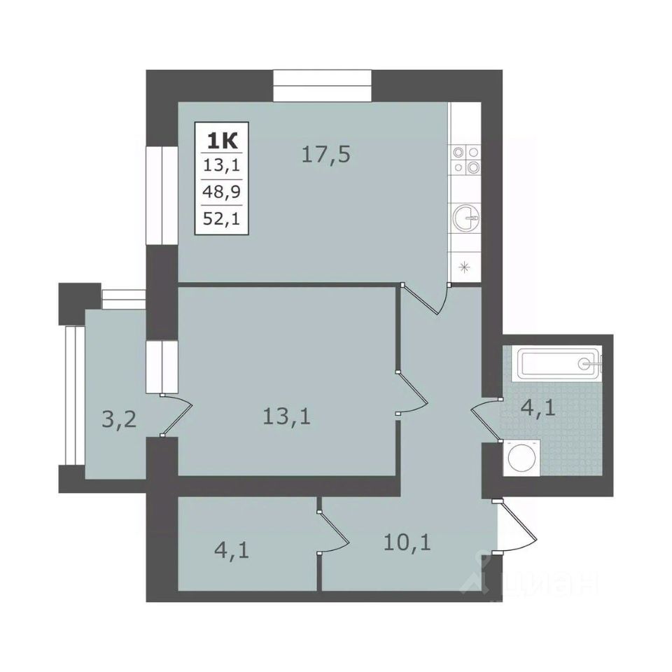 Общая площадь52,1 м2