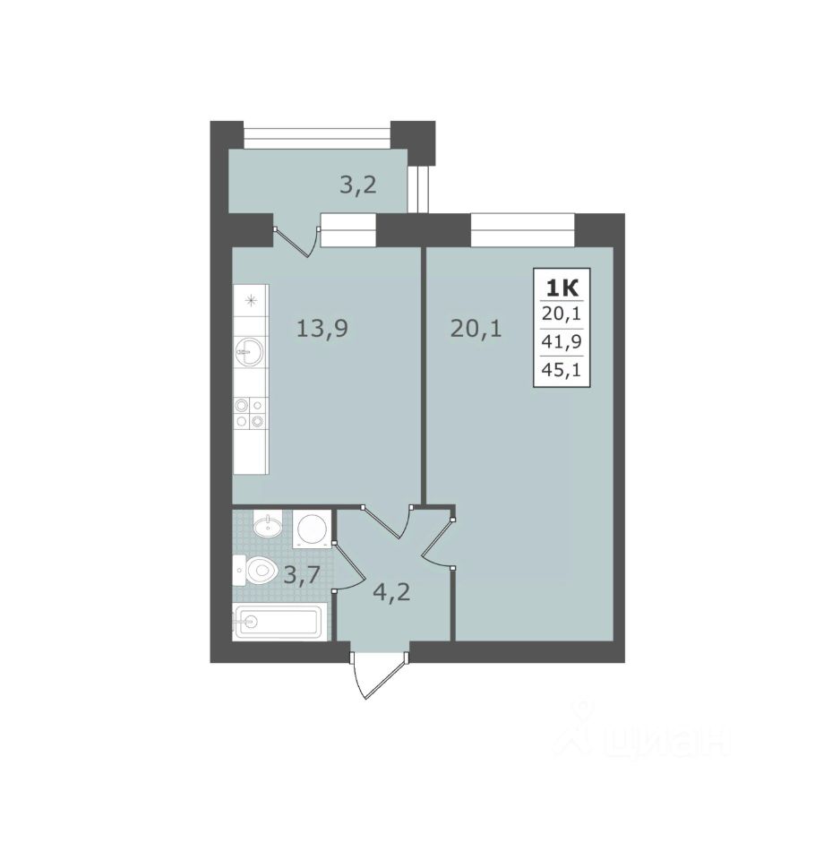 Общая площадь45,1 м2