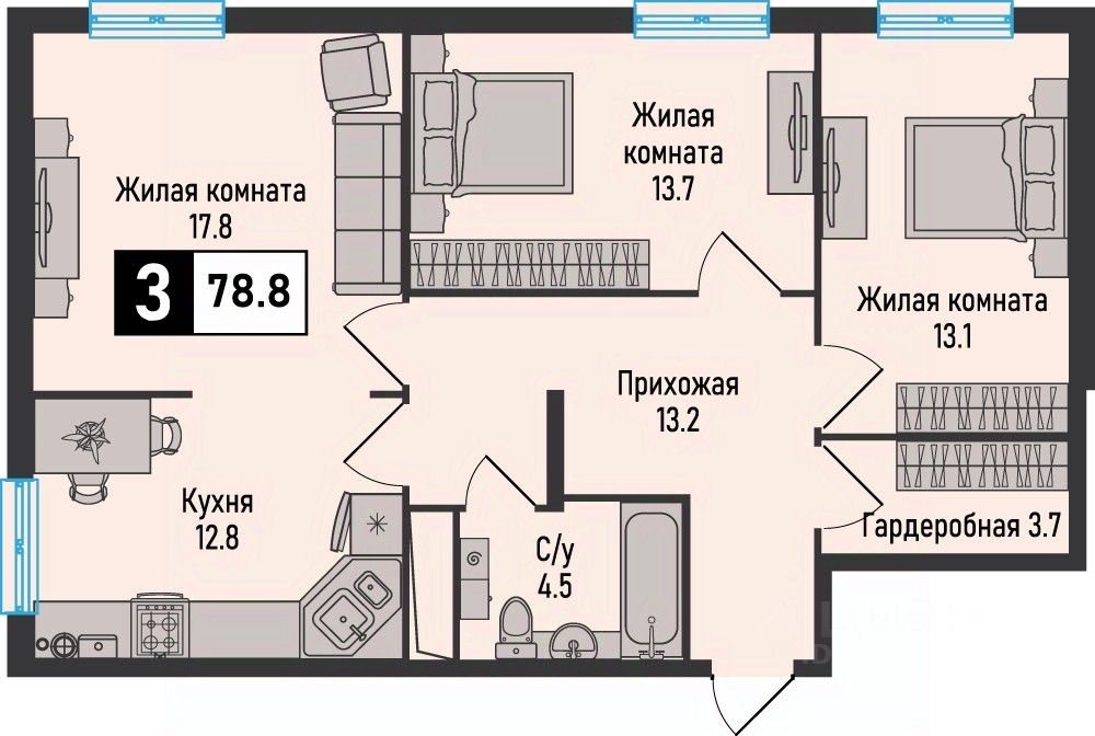 Продаётся 3-комнатная квартира в строящемся доме (7 очередь 1 этап), срок сдачи: III-кв. 2026, общей площадью 78.8 кв.м., на 7 этаже. Новый жилой комплекс ''Живописный'' расположен на территории Кавказских Минеральных Вод, рядом с основными курортными городами (Железноводск, Пятигорск, Ессентуки, Кисловодск) и горнолыжными курортами соседних республик. Насладиться головокружительными видами и активным отдыхом можно в соседних регионах: в Карачаево-Черкессии (на горнолыжных курортах Архыз и Домбай) или в Кабардино-Балкарии (в Приэльбрусье, побывав на г.Эльбрус). А из Международного аэропорта Минеральные Воды имени М. Ю. Лермонтова, расположенного в 20 минутах езды, можно улететь более чем по 30 внутренним и международным направлениям. ЖК ''Живописный'': Атмосфера: комплекс расположен в экологически чистом районе, органично вписываясь в окружающий ландшафт с колоритной природой и потрясающими видами.Отлаженная инфраструктура: образовательные учреждения, объекты здравоохранения, транспортные узлы, кафе и магазины находятся в шаговой доступности.Большой выбор квартир разной площади: улучшенные форматы квартир помогут воплотить в жизнь любые дизайнерские идеи и функциональные решения.Индивидуальное отопление позволит вам самостоятельно регулировать температурный режим, включать и отключать систему в любое время года.Проектом предусмотрены коммерческие помещения на первых этажах всех корпусов с целью развития и улучшения качества инфраструктуры. Для вашего удобства организованы наземная парковка и просторные кладовые помещения, вынесенные за пределы квартир.Придомовая территория включает благоустроенные зоны отдыха, детские игровые и воркаут-площадки. Огороженный двор и системы наблюдения обеспечат приватность и безопасность проживания.Более подорбную информацию о строительстве жилого комплека можно узнать на сайте застройщика