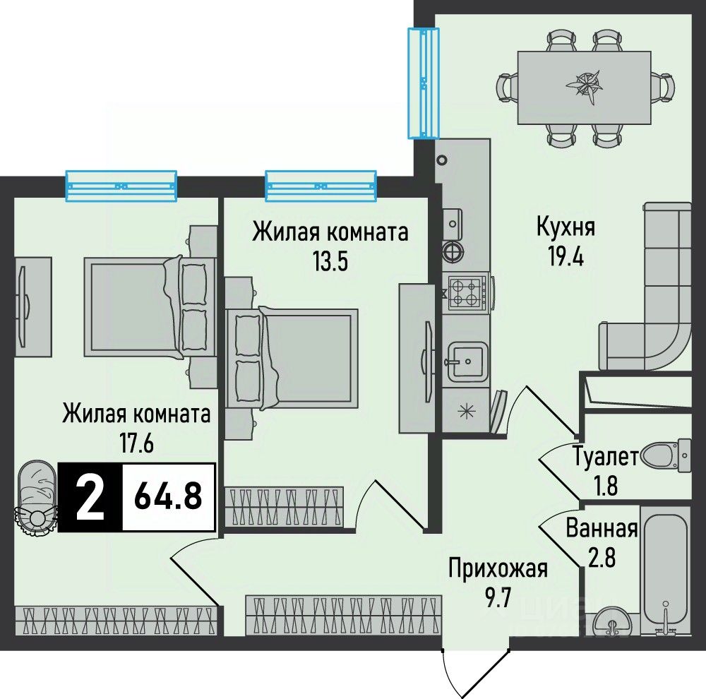 Продаётся 2-комнатная квартира в строящемся доме (7 очередь 1 этап), срок сдачи: III-кв. 2026, общей площадью 64.8 кв.м., на 2 этаже. Новый жилой комплекс ''Живописный'' расположен на территории Кавказских Минеральных Вод, рядом с основными курортными городами (Железноводск, Пятигорск, Ессентуки, Кисловодск) и горнолыжными курортами соседних республик. Насладиться головокружительными видами и активным отдыхом можно в соседних регионах: в Карачаево-Черкессии (на горнолыжных курортах Архыз и Домбай) или в Кабардино-Балкарии (в Приэльбрусье, побывав на г.Эльбрус). А из Международного аэропорта Минеральные Воды имени М. Ю. Лермонтова, расположенного в 20 минутах езды, можно улететь более чем по 30 внутренним и международным направлениям. ЖК ''Живописный'': Атмосфера: комплекс расположен в экологически чистом районе, органично вписываясь в окружающий ландшафт с колоритной природой и потрясающими видами.Отлаженная инфраструктура: образовательные учреждения, объекты здравоохранения, транспортные узлы, кафе и магазины находятся в шаговой доступности.Большой выбор квартир разной площади: улучшенные форматы квартир помогут воплотить в жизнь любые дизайнерские идеи и функциональные решения.Индивидуальное отопление позволит вам самостоятельно регулировать температурный режим, включать и отключать систему в любое время года.Проектом предусмотрены коммерческие помещения на первых этажах всех корпусов с целью развития и улучшения качества инфраструктуры. Для вашего удобства организованы наземная парковка и просторные кладовые помещения, вынесенные за пределы квартир.Придомовая территория включает благоустроенные зоны отдыха, детские игровые и воркаут-площадки. Огороженный двор и системы наблюдения обеспечат приватность и безопасность проживания.Более подорбную информацию о строительстве жилого комплека можно узнать на сайте застройщика