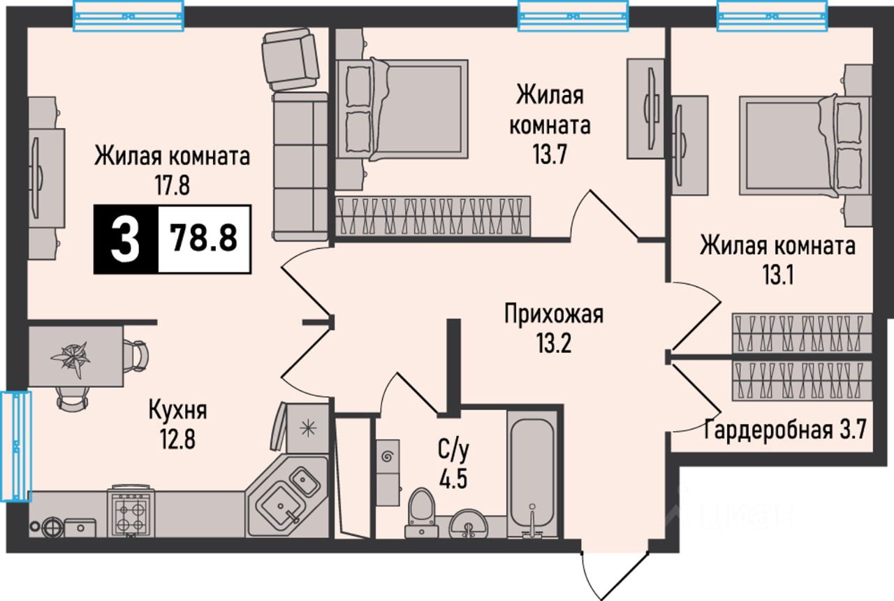 Продаётся 3-комнатная квартира в строящемся доме (7 очередь 1 этап), срок сдачи: III-кв. 2026, общей площадью 78.8 кв.м., на 1 этаже. Новый жилой комплекс ''Живописный'' расположен на территории Кавказских Минеральных Вод, рядом с основными курортными городами (Железноводск, Пятигорск, Ессентуки, Кисловодск) и горнолыжными курортами соседних республик. Насладиться головокружительными видами и активным отдыхом можно в соседних регионах: в Карачаево-Черкессии (на горнолыжных курортах Архыз и Домбай) или в Кабардино-Балкарии (в Приэльбрусье, побывав на г.Эльбрус). А из Международного аэропорта Минеральные Воды имени М. Ю. Лермонтова, расположенного в 20 минутах езды, можно улететь более чем по 30 внутренним и международным направлениям. ЖК ''Живописный'': Атмосфера: комплекс расположен в экологически чистом районе, органично вписываясь в окружающий ландшафт с колоритной природой и потрясающими видами.Отлаженная инфраструктура: образовательные учреждения, объекты здравоохранения, транспортные узлы, кафе и магазины находятся в шаговой доступности.Большой выбор квартир разной площади: улучшенные форматы квартир помогут воплотить в жизнь любые дизайнерские идеи и функциональные решения.Индивидуальное отопление позволит вам самостоятельно регулировать температурный режим, включать и отключать систему в любое время года.Проектом предусмотрены коммерческие помещения на первых этажах всех корпусов с целью развития и улучшения качества инфраструктуры. Для вашего удобства организованы наземная парковка и просторные кладовые помещения, вынесенные за пределы квартир.Придомовая территория включает благоустроенные зоны отдыха, детские игровые и воркаут-площадки. Огороженный двор и системы наблюдения обеспечат приватность и безопасность проживания.Более подорбную информацию о строительстве жилого комплека можно узнать на сайте застройщика