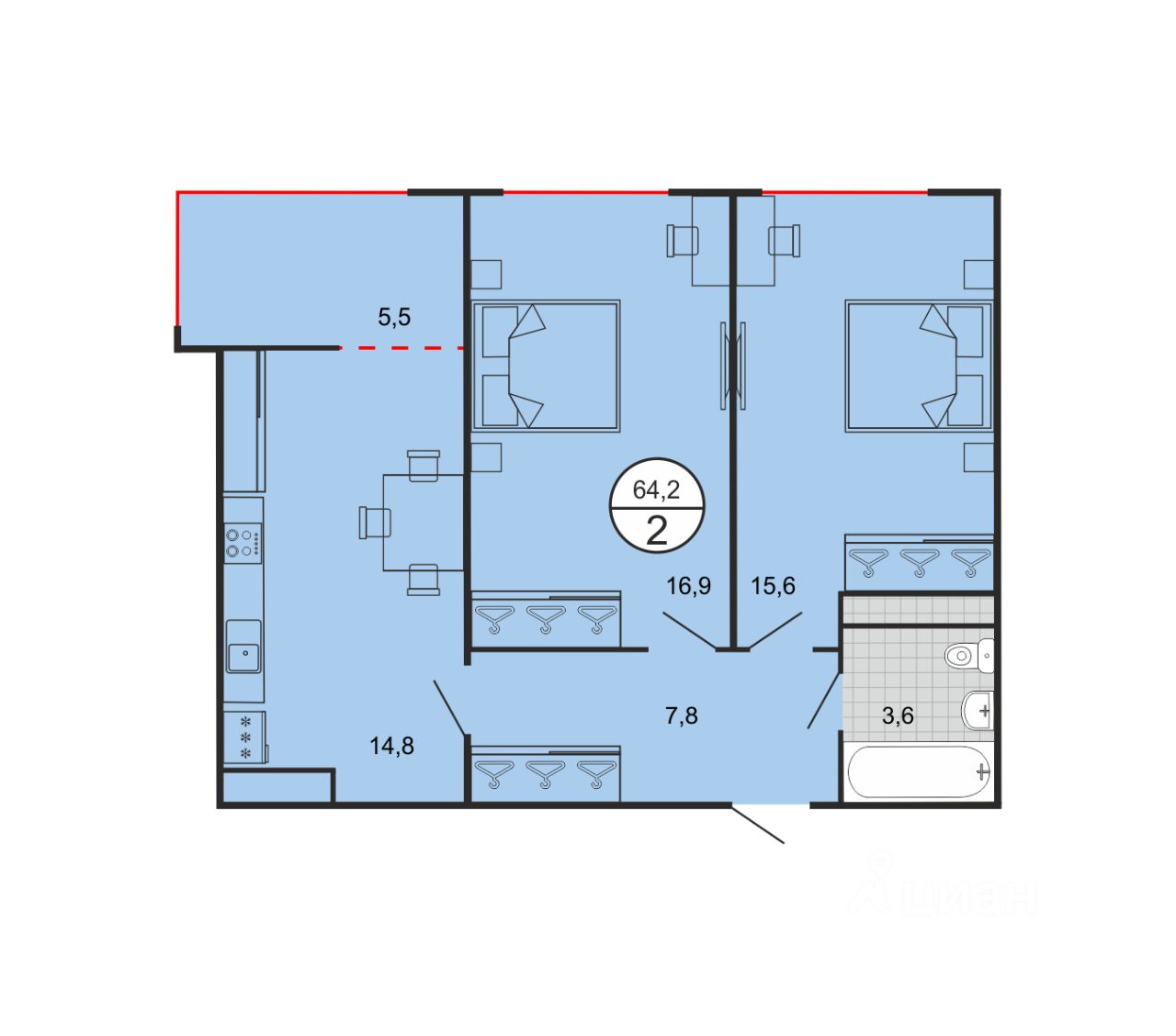 Общая площадь64,2 м2