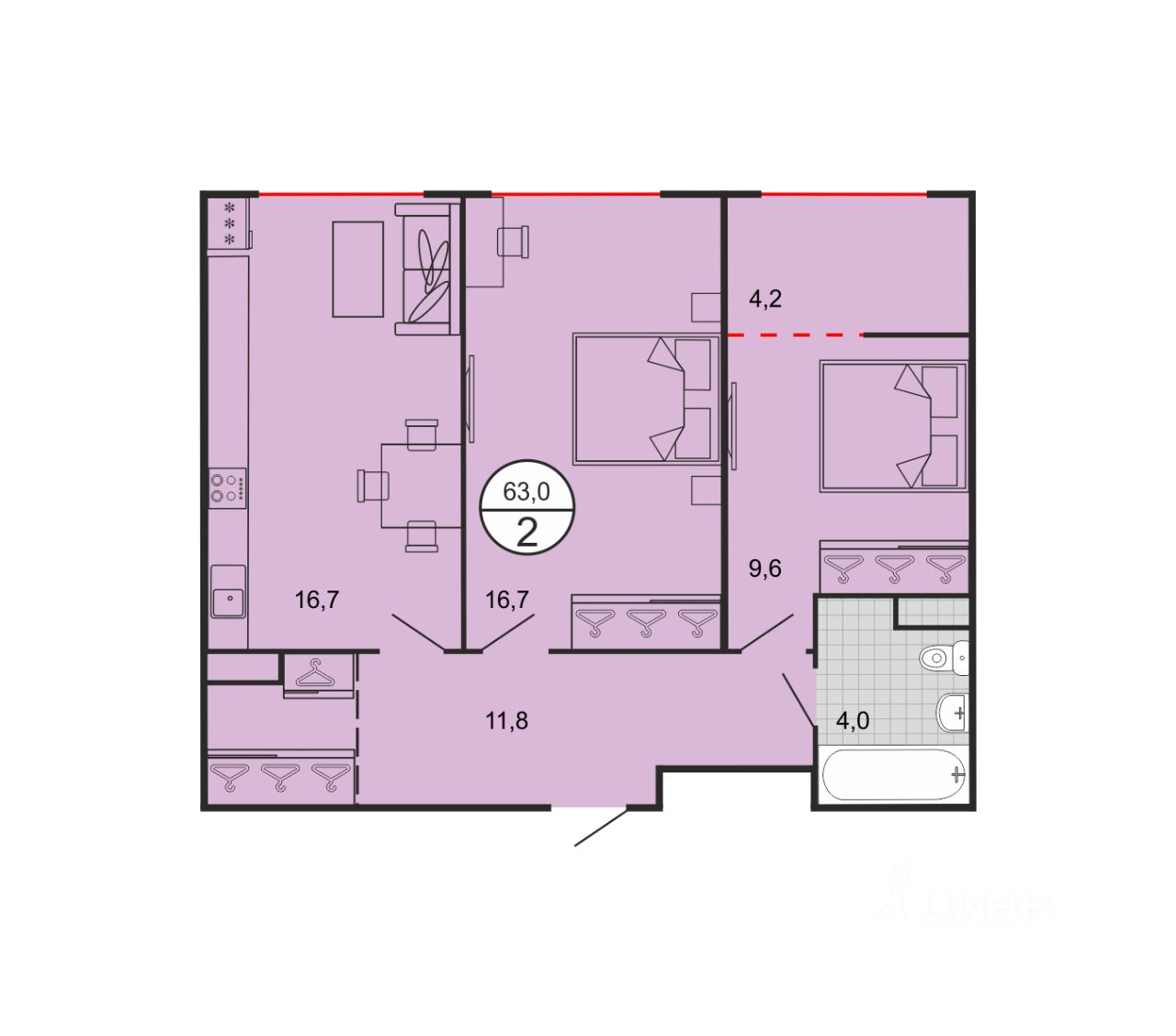Общая площадь63 м2