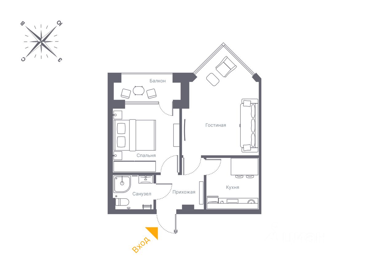 О Квартире Евродвушка Общая площадь: 54 м² Этаж: 7 Высота потолков 3.