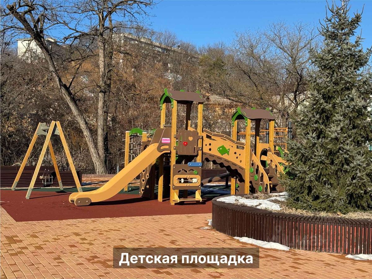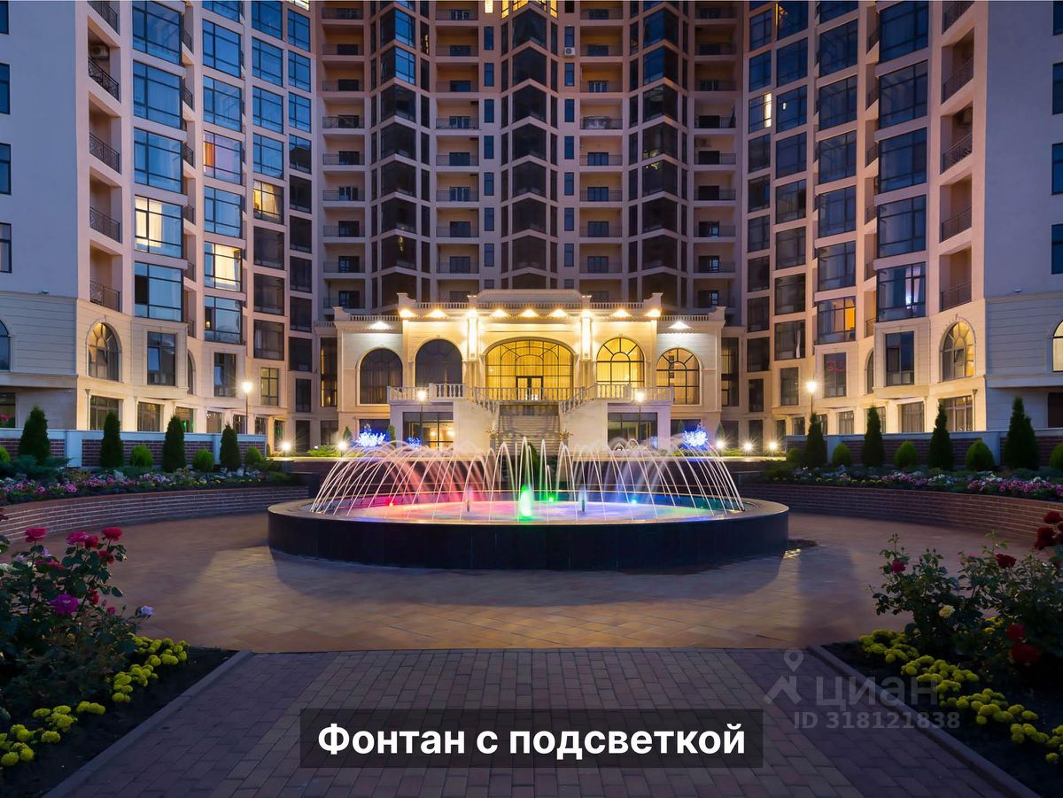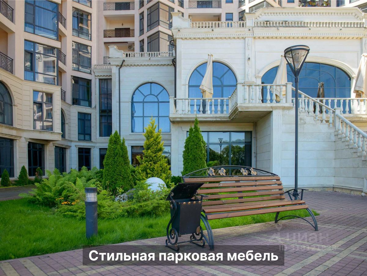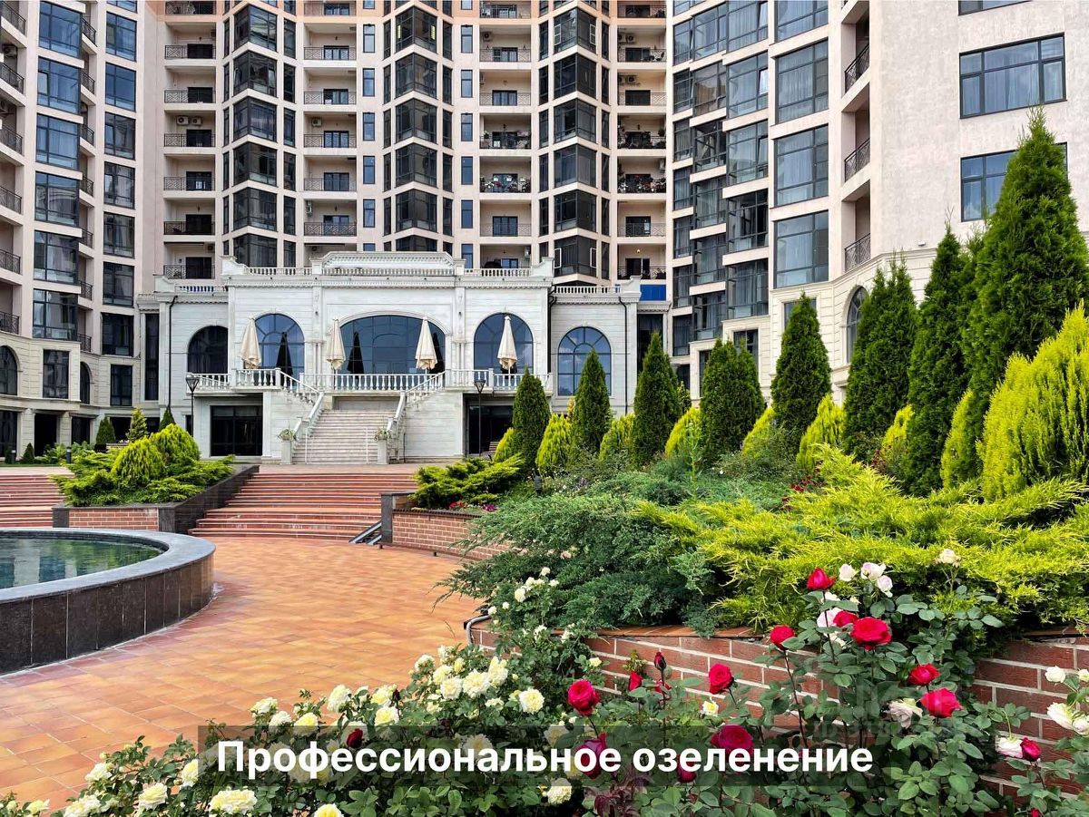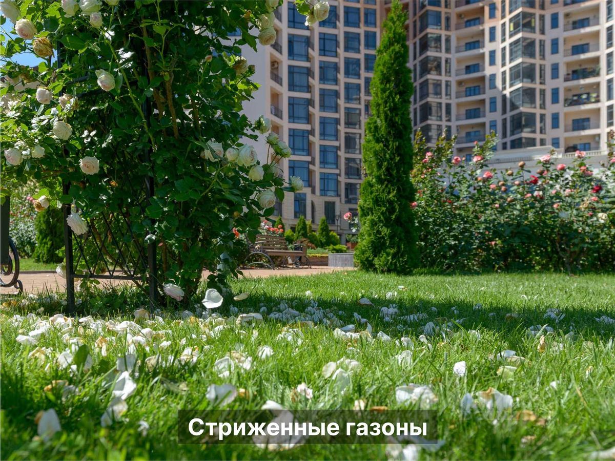 Территория Площадь участка ~ 1,57 га Площадь сада ~ 0.5 га Территория огорожена Охраняется 24/7 Въезд через КПП Видеонаблюдение ПАРКОВКА открытая во дворе за шлагбаумом ГАРАЖ есть в продаже В тёплое время года работает фонтан с подсветкой Установлены детская площадка, беседки, перголы, дизайнерские фонари освещения, лавочки и урны. Проведено масштабное озеленение и регулярно работают профессиональные садовники. Высажено более 500 кустов роз, хвойных деревьев, платаны, сакуры, газон, множество лиственных деревьев и огромная ель, которую наряжают на Новый год.