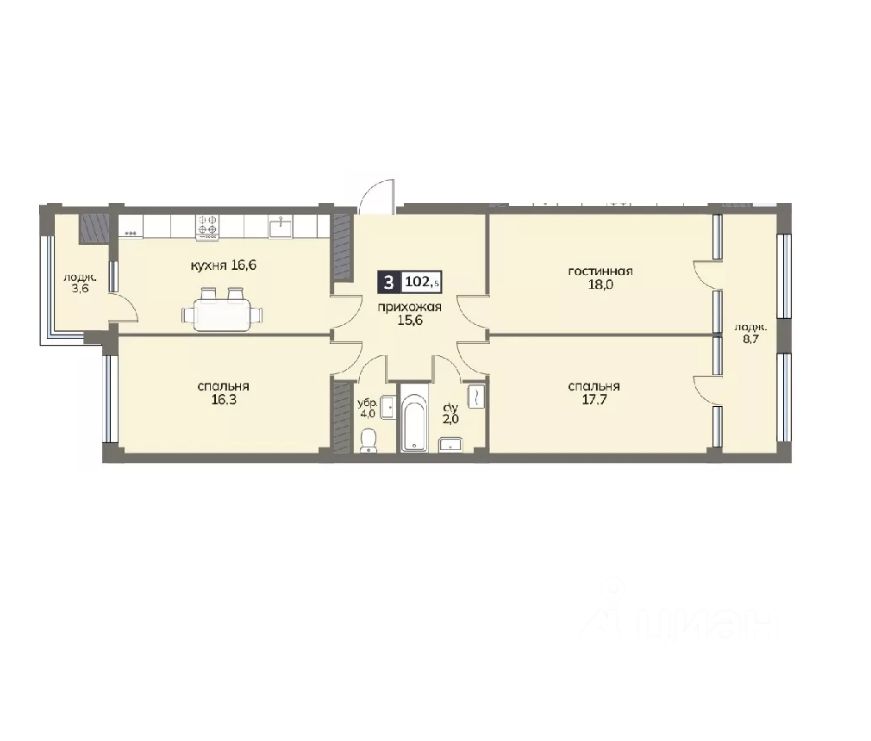 Общая площадь102,5 м2
