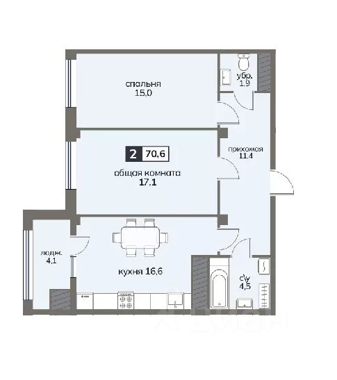 Общая площадь70,6 м2