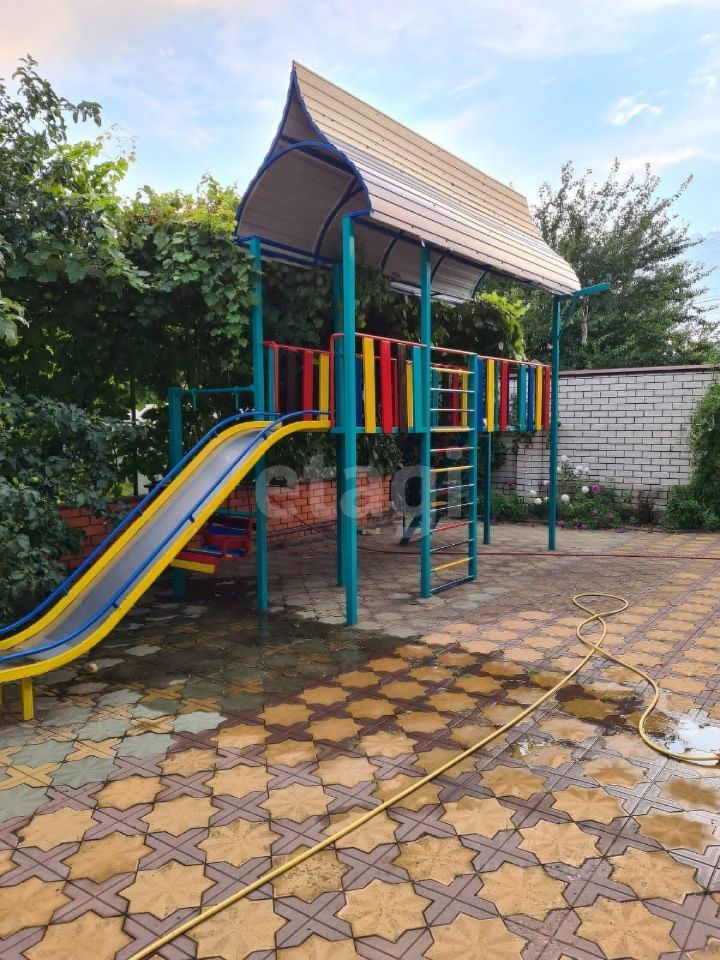 Двор дома просторный, ухоженный, уложенный плиткой и накрытый навесом. На участке имеется: - парковочное место на 3 машины, - вольер 20 кв.м, - детская площадка, - место для мангала, - летний домик 25 кв.м, - мастерская 20 кв.м, - теплица, - небольшой сад с плодовыми деревьями, - теннисный корт с баскетбольным кольцом.