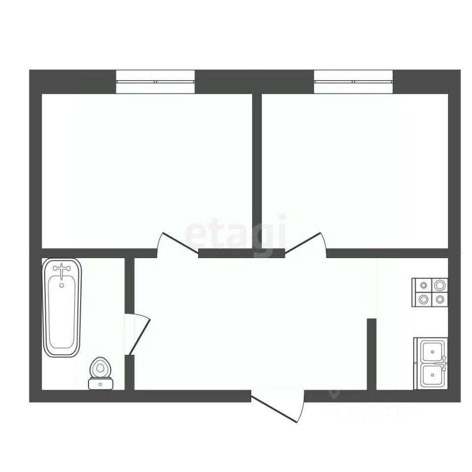 Площадь 35,8 кв. м., две просторные жилые комнаты, совмещённый санузел, небольшая кухонная зона с электроплитой.