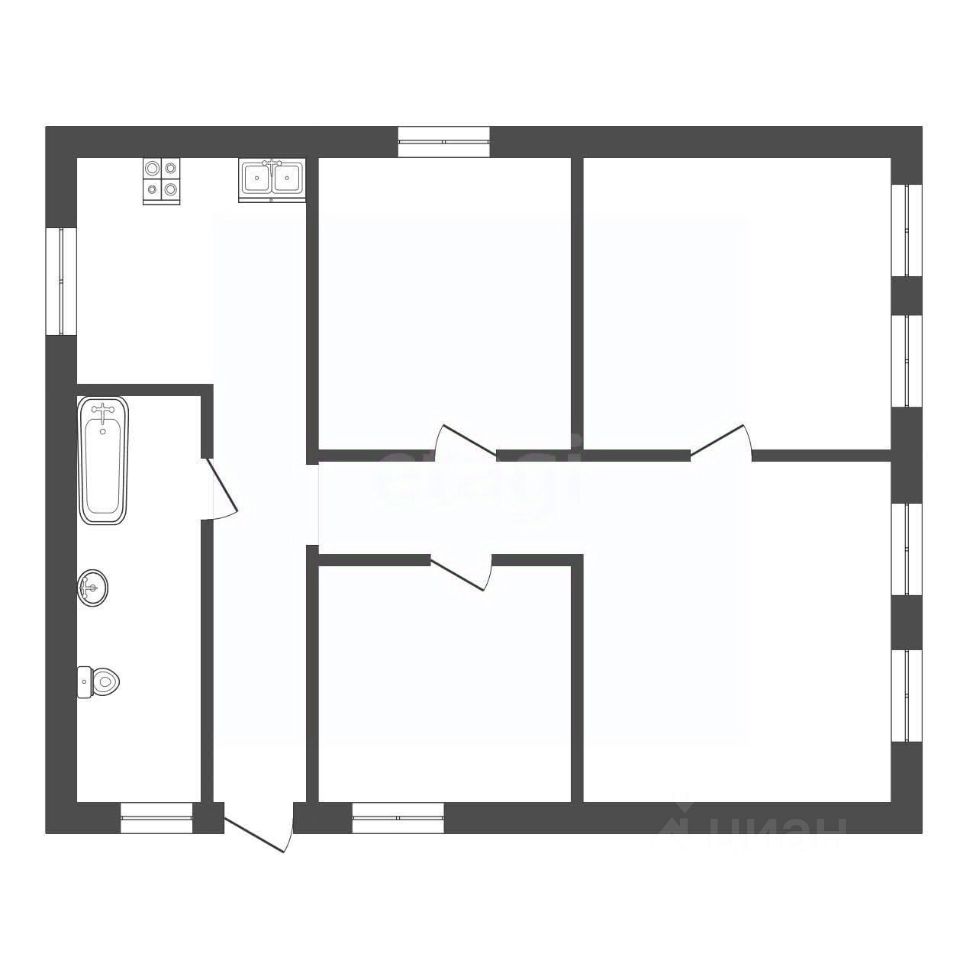 - Дом площадью 80 кв. метров (Отдельно вынесена котельная (на котел установлена автоматика). 4 комнаты в доме (2 изолированные комнаты и 2 комнаты смежные.) Большой и вместительный коридор и прихожая, большая и вместительная ванная, Большая просторная кухня.
