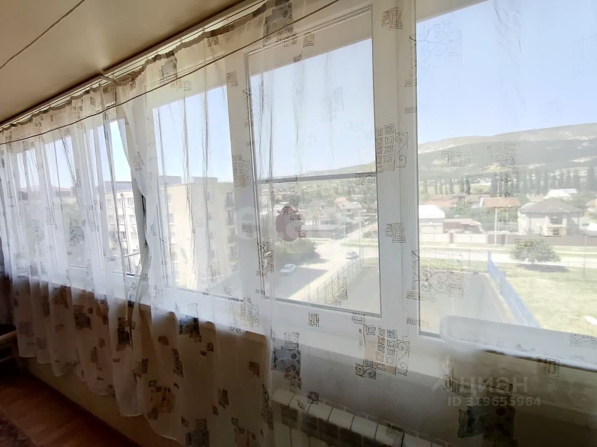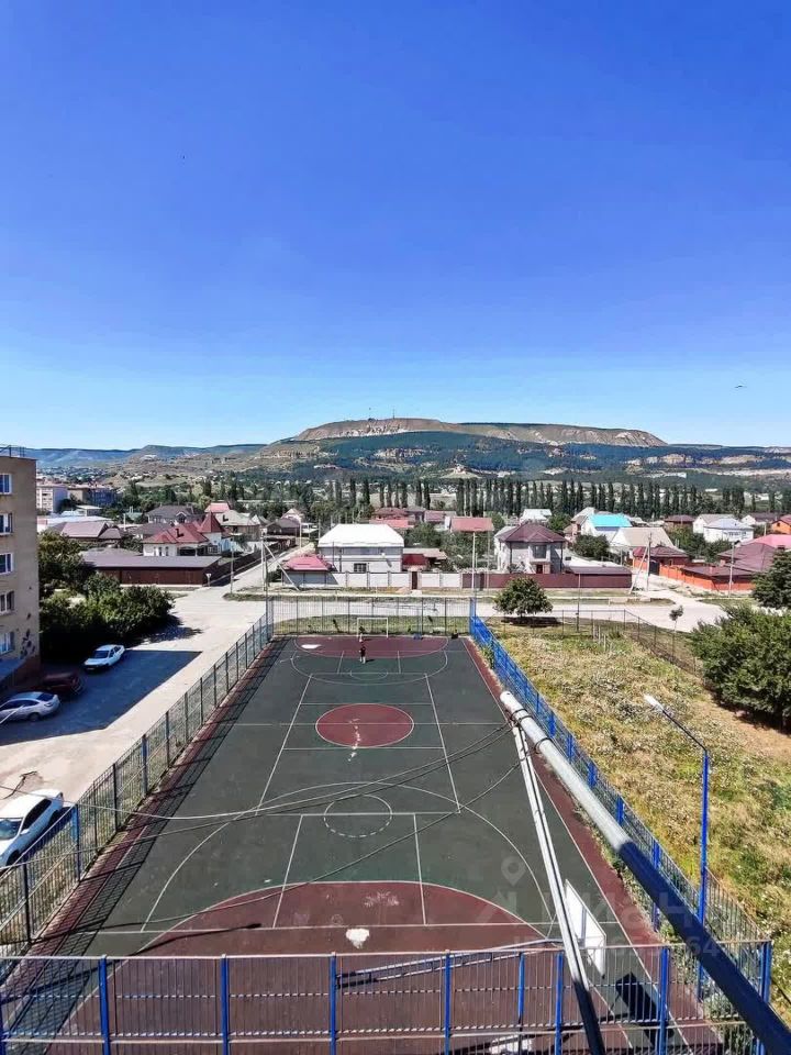Квартира расположена на 5 этаже и из окон открывается прекрасный вид на Боргустанский хребет и гору Кольцо, возле дома находится огороженная спортивная площадка.