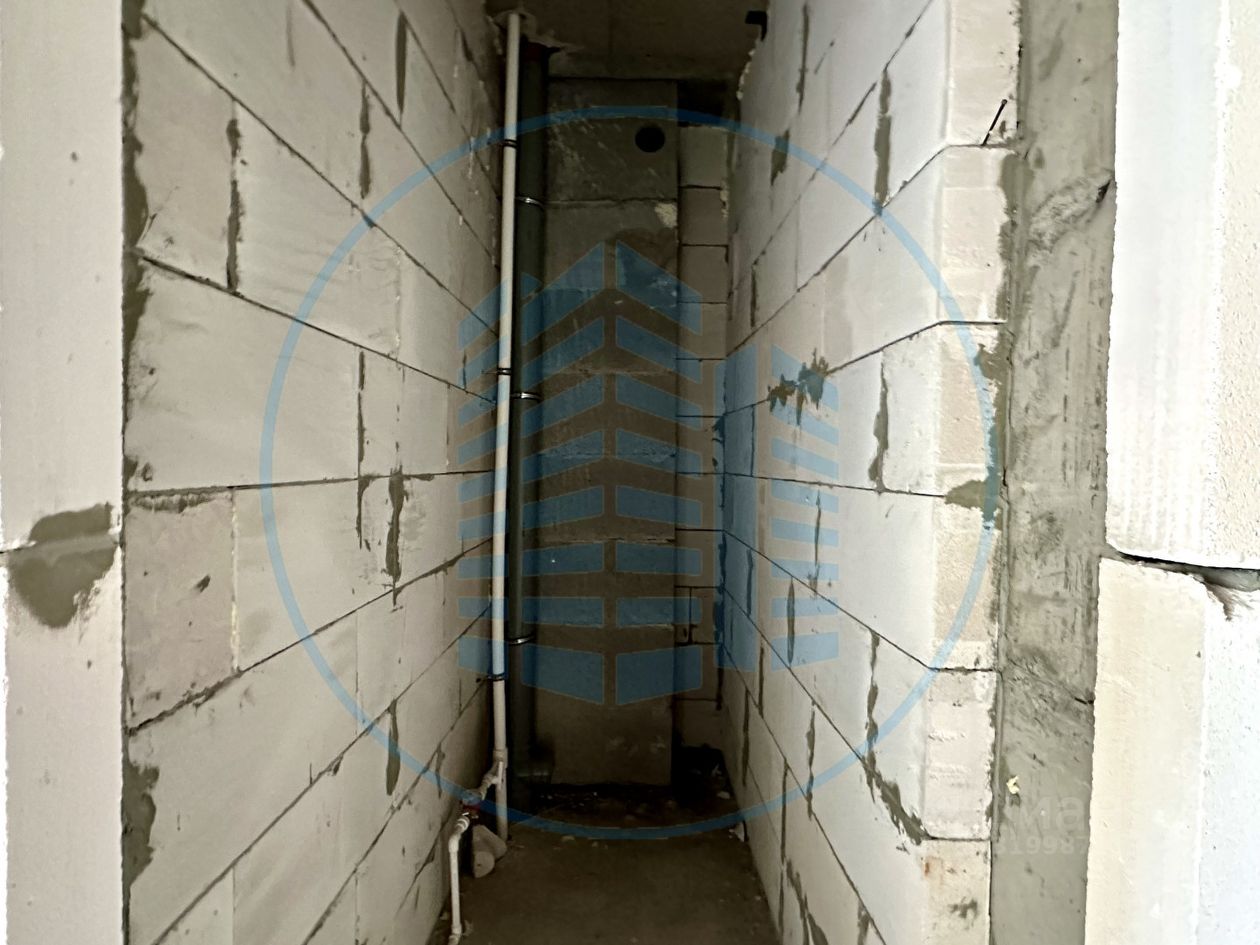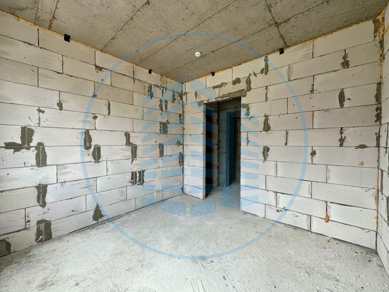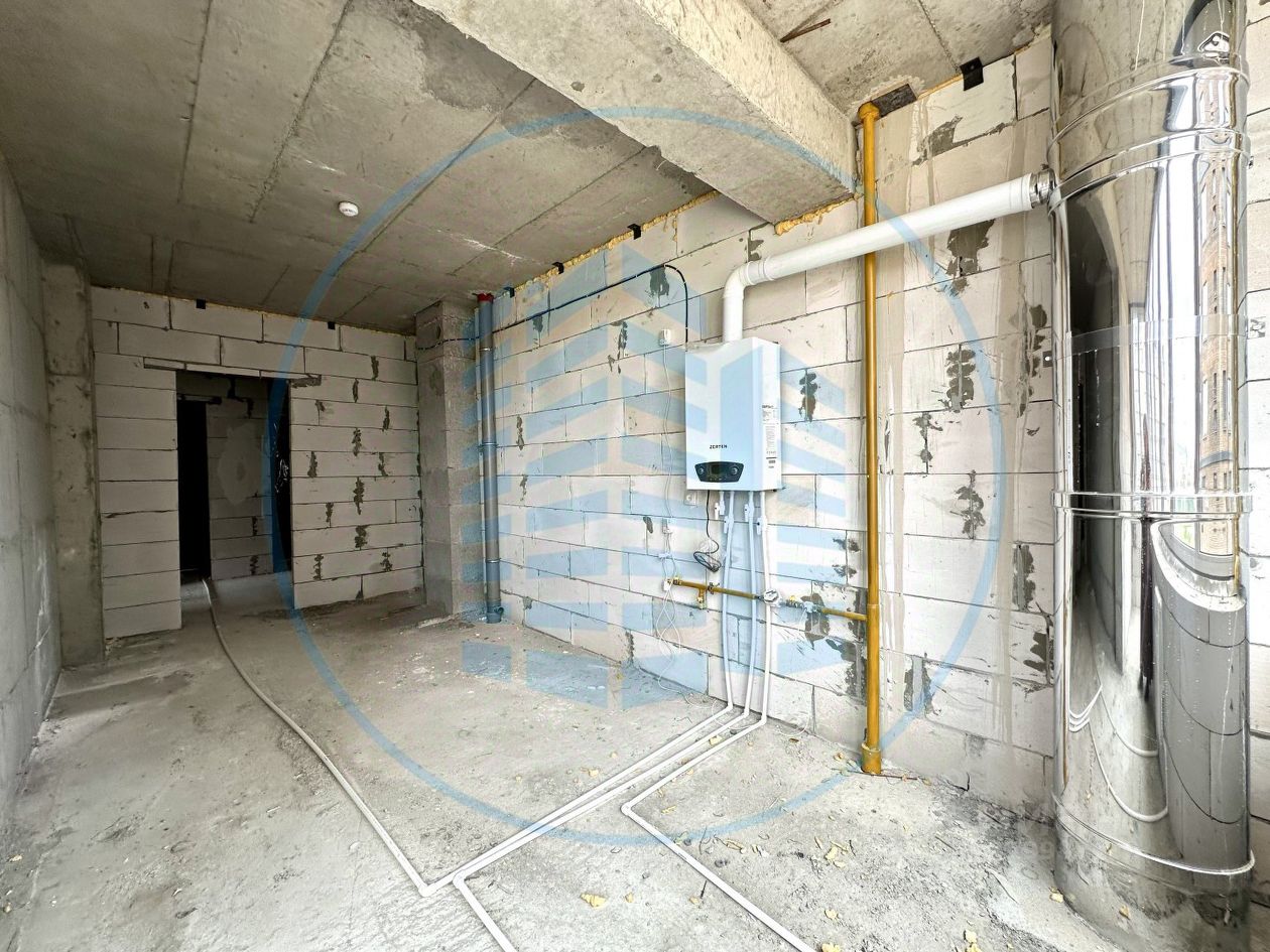 Современная планировка с панорамными видами. Состояние после строителей: заведено электричество, установлен двухконтурный котел и одна секция радиатора, металическая входная дверь.