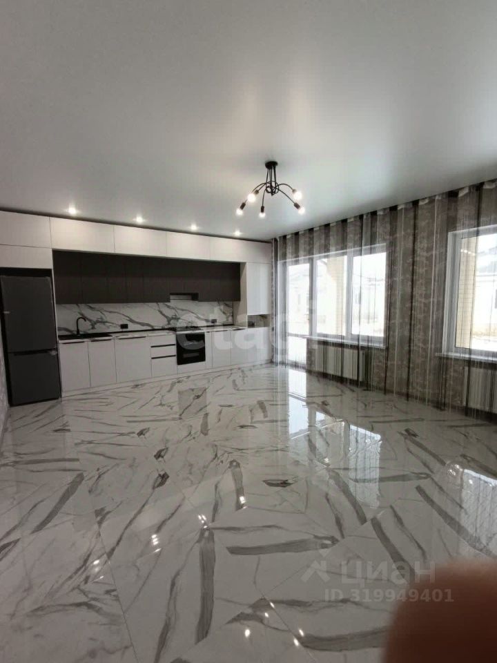 Сделан современный ремонт, три отдельные спальни, кухня гостиная, на кухне установлен кухонный гарнитур по индивидуальному дизайн. проекту, установлена встраиваемая техника: духовой шкаф, варочная поверхность, вытяжка, мойка. Во всём доме тёплые полы, в каждую комнаты установлены белые двери, натяжные потолки.