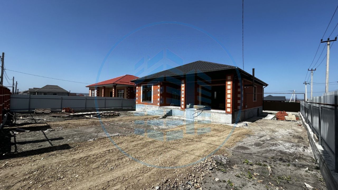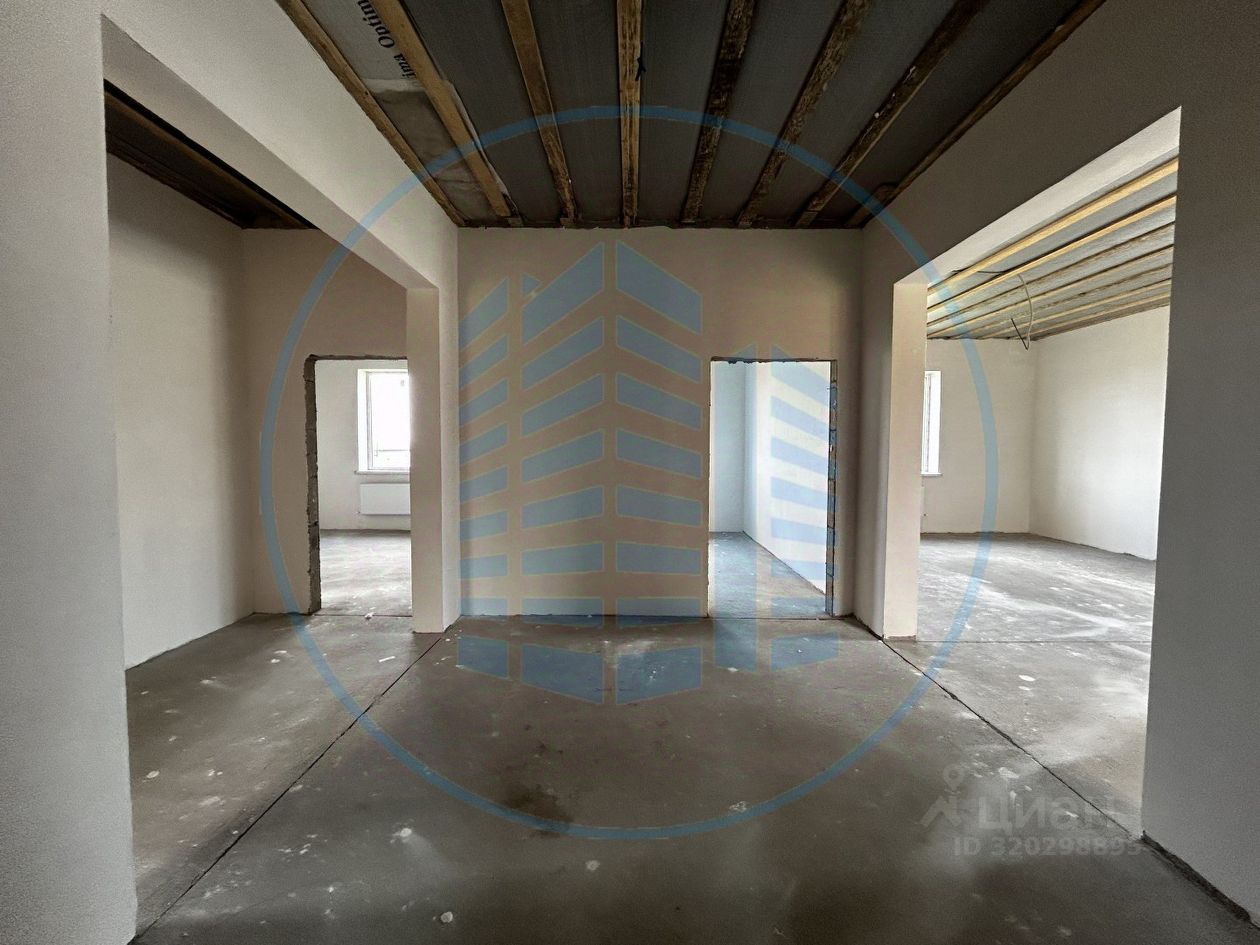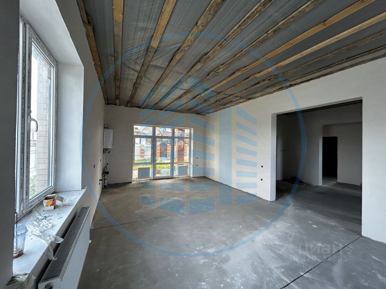 Планировка: холл с нишей под встроенный шкаф, просторная кухня-гостиная с выходом на террасу, два санузла и гардеробная, три изолированные спальни. Подвальное помещение. Дом в предчистовом состоянии. Подъезд к дому по асфальтированной улице.