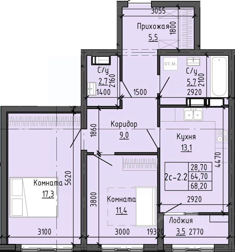 Общая площадь67,91 м2