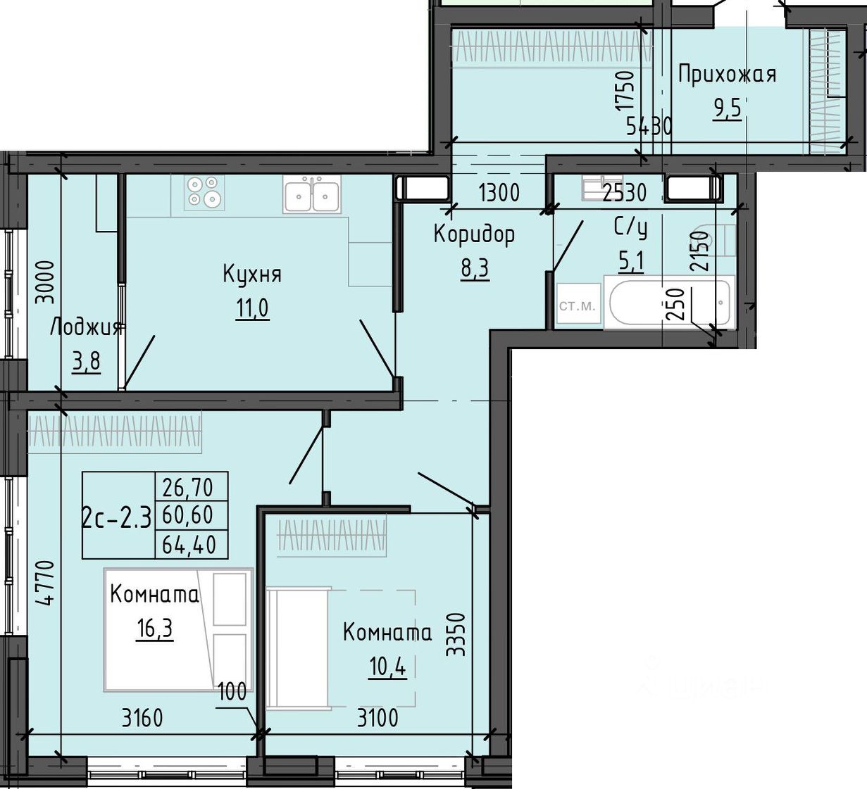 Общая площадь64,26 м2