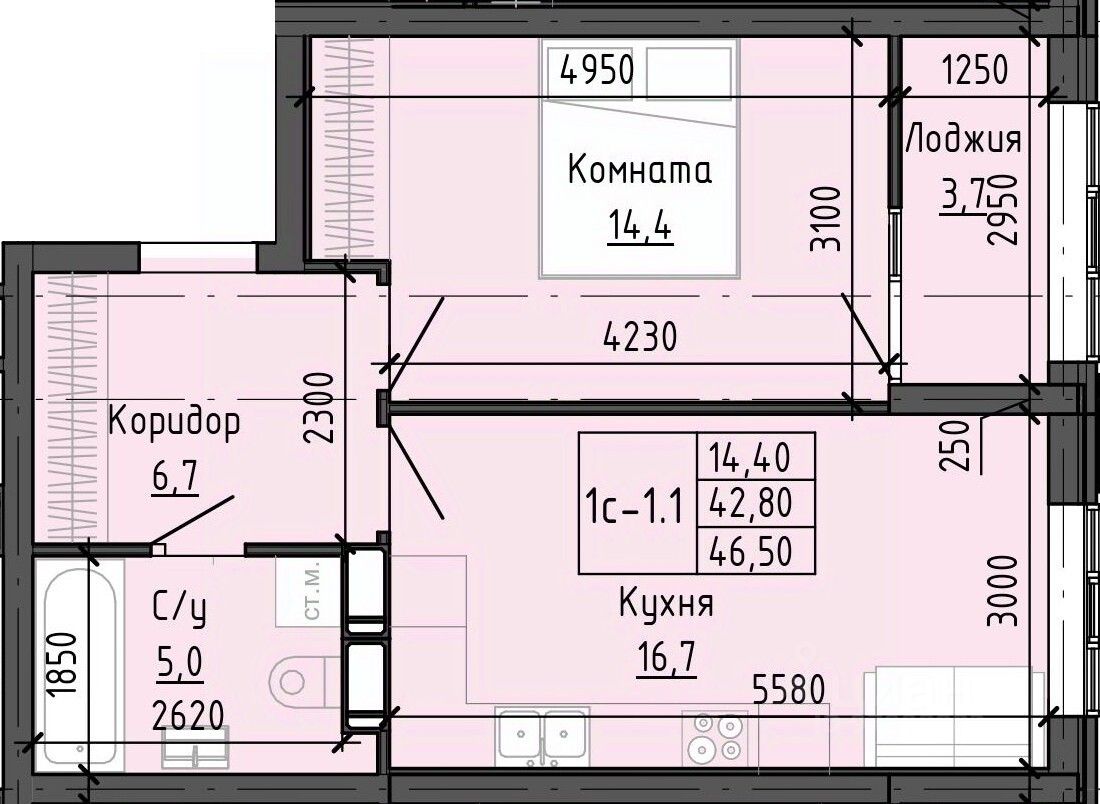 Общая площадь46,49 м2