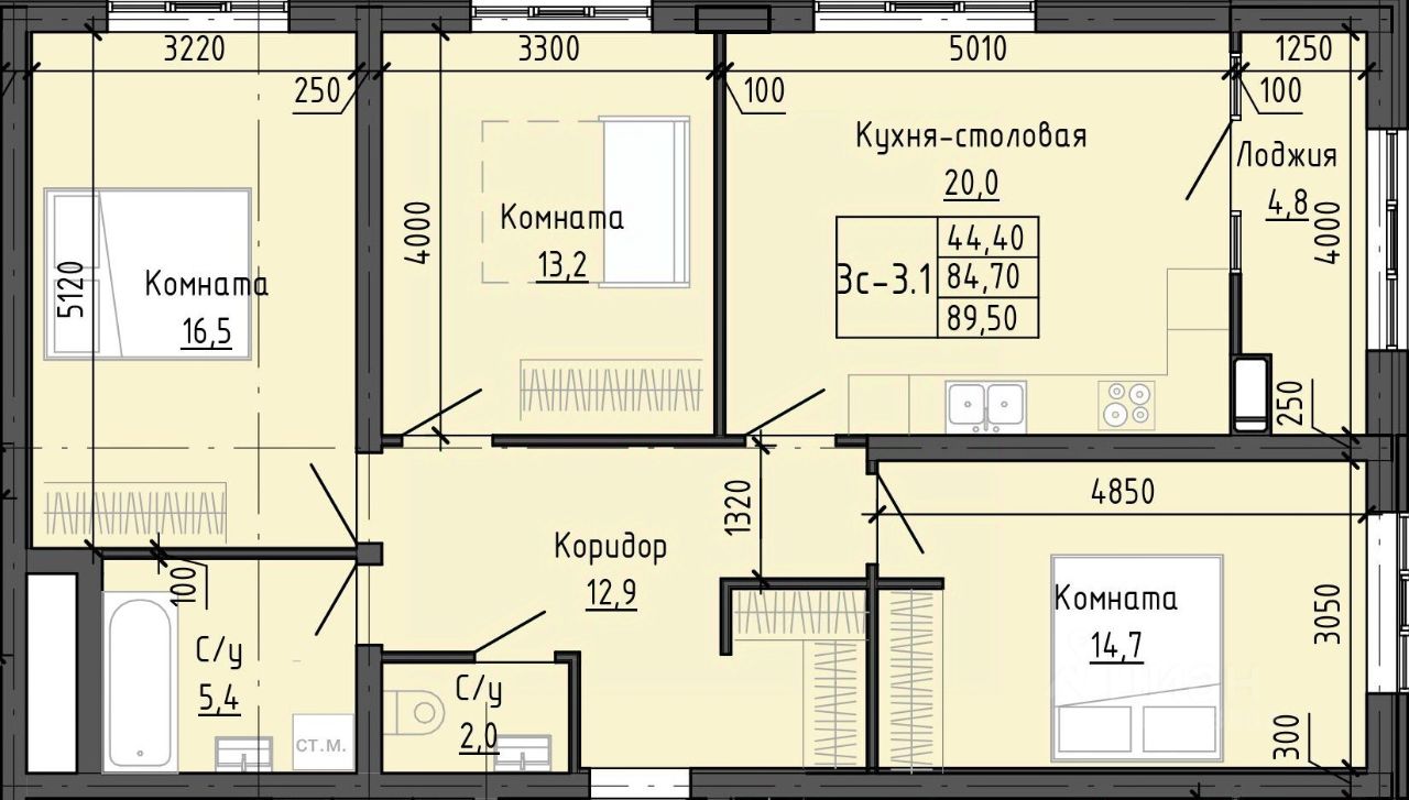 Общая площадь89,57 м2