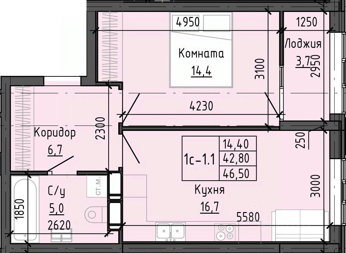 продам 1-к квартира6 601 580 ₽