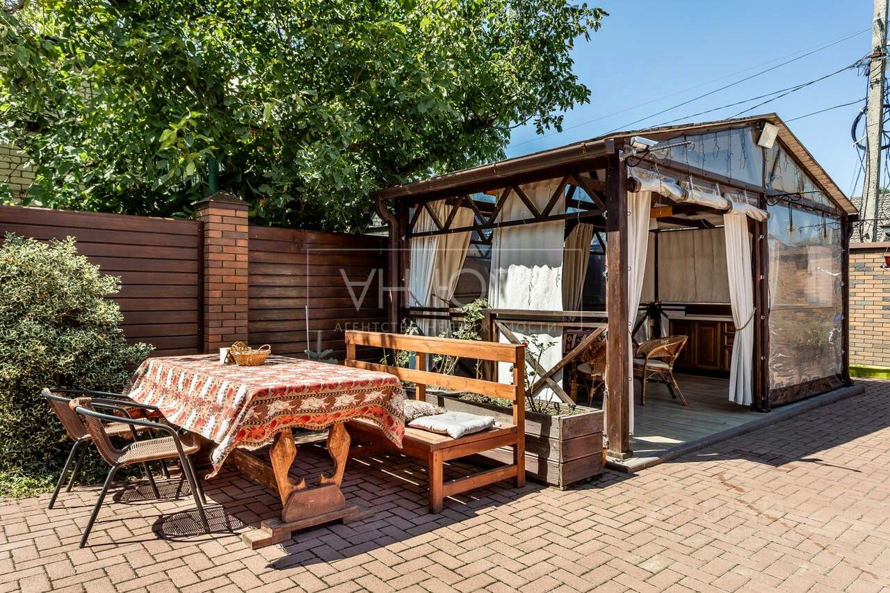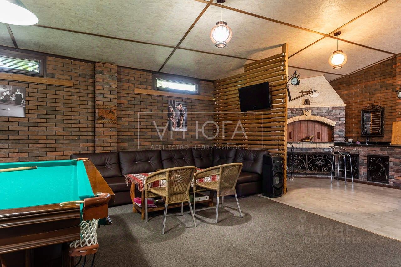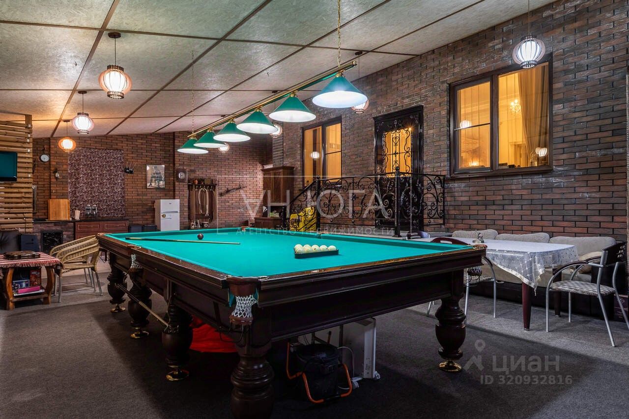 Задний двор полностью изолирован и обустроен под зону отдыха, накрыт навесом и утеплён. Есть мангальная зона и бильярдный стол. На фото всё видно.