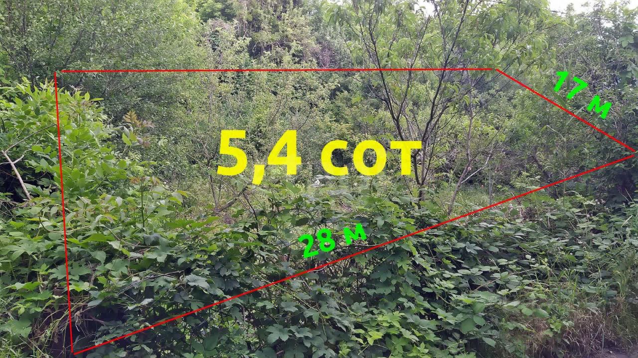 Плoщaдь участка 5,4 сотки. Размер участка 28*17 метров. По границе участка протекает ручей с чистой ключевой водой. Есть прекрасная возможность построить прудик.