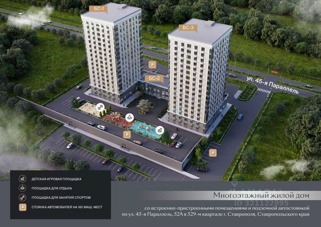 ЖК ''Настоящий'' — современное пространство для комфортной жизни всей семьи. Комплекс строится по новейшим технологиям: эргономичные планировки, энергоэффективные окна, отделка white box, индивидуальное отопление, которые делают жизнь безопаснее и удобнее. Территория для жизни Территория закрыта от посторонних и продумана до мелочей: • уютные зоны отдыха для взрослых • современные детские и спортивные площадки • зелёные газоны, клумбы, декоративные деревья • внутренние проезды и дорожки с твёрдым покрытием Лифты спускаются прямо в подземный паркинг на 70 машиномест — вам не придётся выходить на улицу в непогоду. Локация и инфраструктура ЖК расположен в востребованном Юго-Западном районе Ставрополя, на красной линии. • Удобная транспортная развязка, в шаговой доступности остановки общественного транспорта. • рядом школа и детский сад — всё необходимое для семьи • зелёный сквер в пешей доступности для прогулок и отдыха Характеристики комплекса • Два 18-этажных дома, всего 278 квартир • Потолки — 2,75 м • Современные инженерные системы и вентилируемые фасады • Дополнительная шумоизоляция • Эргономичные планировки для разных потребностей Условия покупки Предлагаются максимально гибкие варианты: • наличный расчёт • беспроцентная рассрочка от застройщика