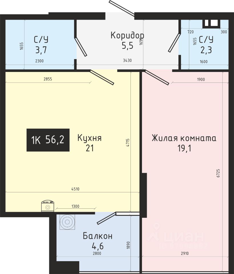 Общая площадь56,2 м2