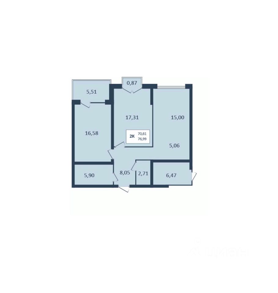 Общая площадь76,99 м2