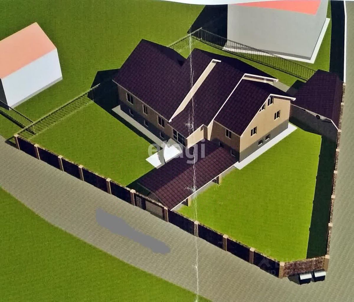 Отдельный вход и въезд, видеонаблюдение, мощный въездной портал с возможностью размещения большой мангальной зоны, автоматические ворота, стоянка для 6 авто. Газоны, кустарники.