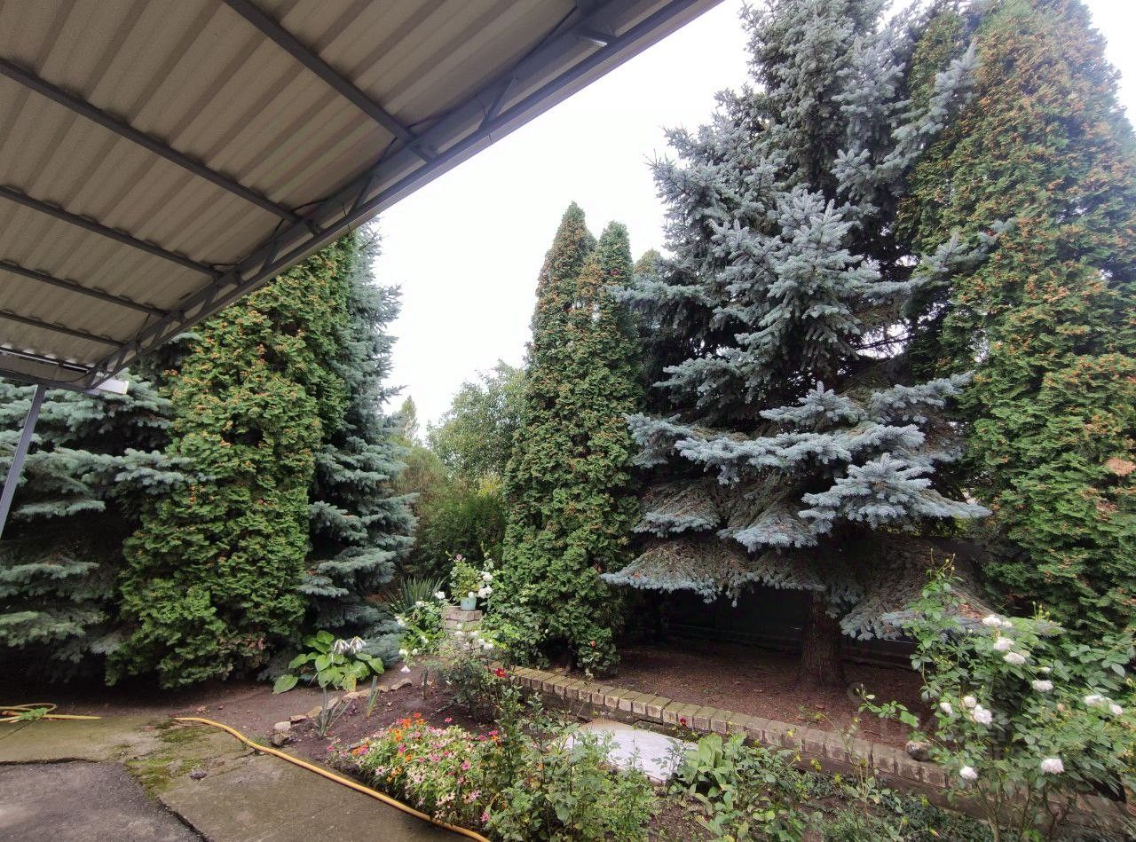 Зона отдыха под навесом с оборудованным местом для мангала. Ландшафтный дизайн: Роскошные голубые ели и туи создают ощущение уединения и единства с природой. Плодовый сад: На участке растут фруктовые деревья, кустарники, орехи и виноград. Удобства: Отдельный кран для полива растений, большая придомовая территория (можно обустроить под парковку, детскую площадку или клумбы).