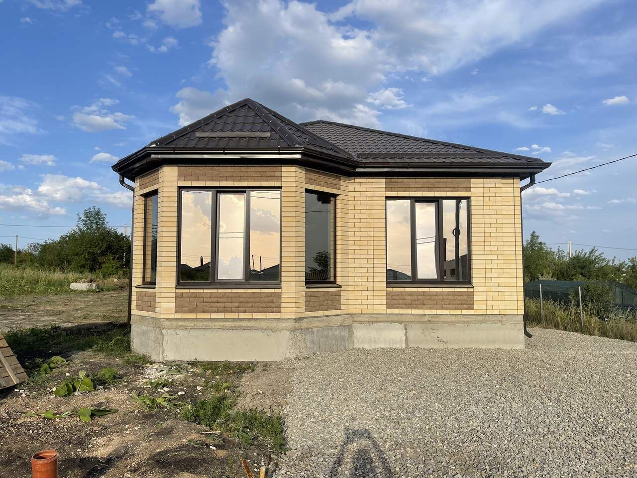 Общая площадь 125 кв.м 3 спальни, раздельный санузел, гардеробная, кухня гостиная с выходом на террасу крытую.