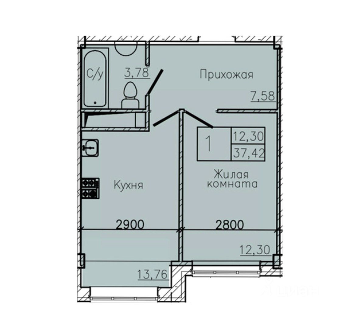 Общая площадь37,42 м2