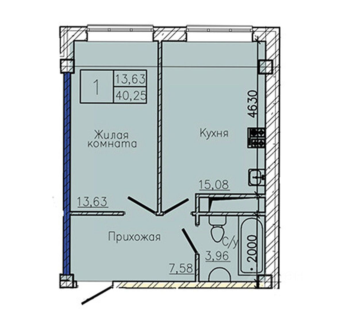 Общая площадь40,25 м2