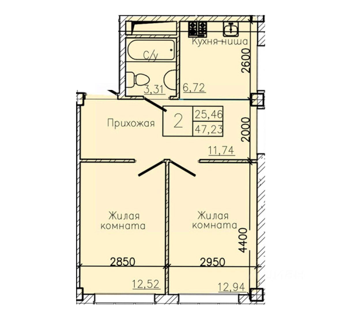 Общая площадь47,23 м2