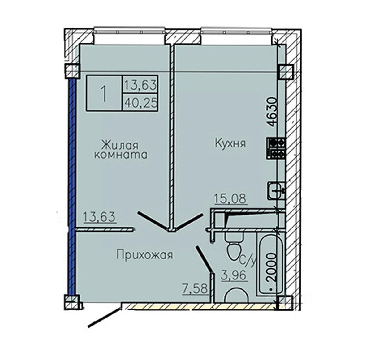 Общая площадь40,25 м2