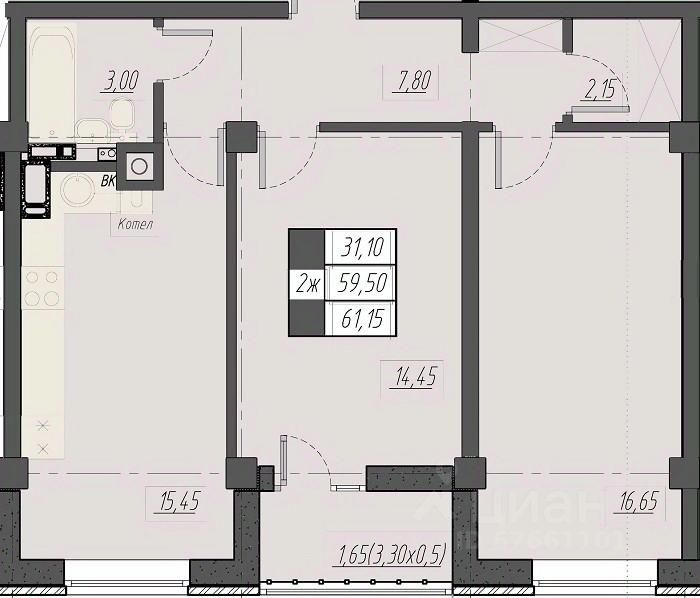 Общая площадь61,15 м2