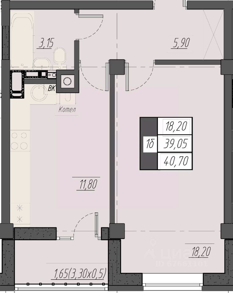 Общая площадь40,75 м2