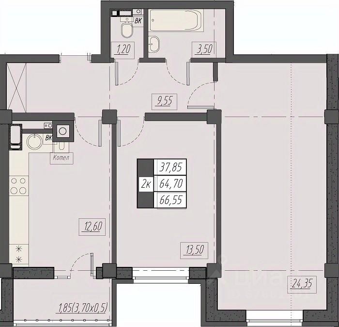 Общая площадь66,55 м2