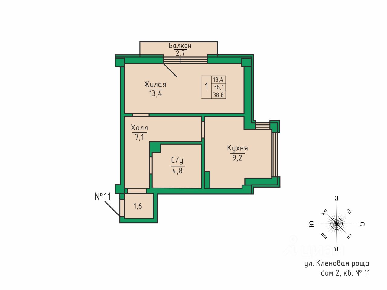 Общая площадь36,1 м2