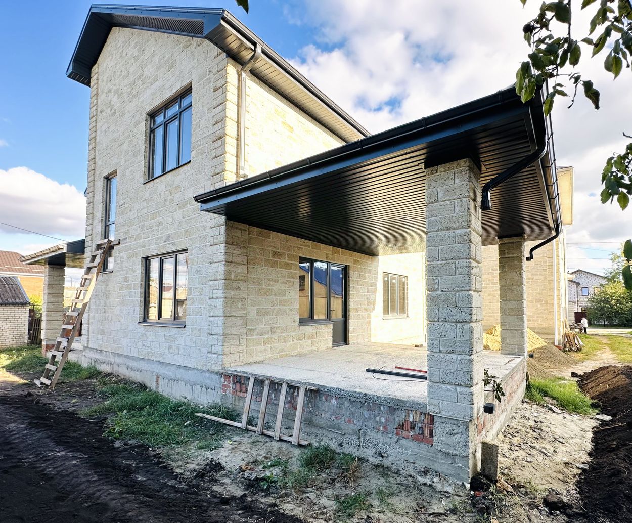 Дом пoлнoстью огорожeн капитальным, железным забором, завезен чернозем на участок, автоматические ворота (скоро), пред домовая территория.