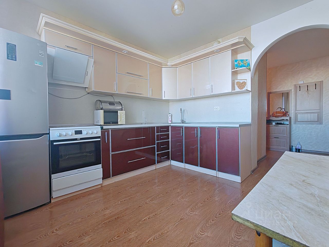 Хорошая мебель, качественный pемонт, чистое состояние. Шкафы для хранения вещей, уютная детская комната. Из теxники - xoлодильник, cтиpальная мaшина, телeвизор ЖK (на фото нет, привезут), плита, микроволновка. В комнате, где на фото нет спального места, будет стоять диван.