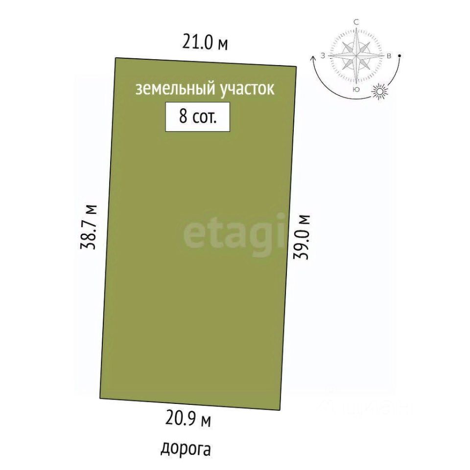 - Участок, площадью 8 соток с правильной прямоугольной формой, позволит вам разместить дом или барны своей мечты и наслаждаться природой и находиться в быстрой доступности к городу.