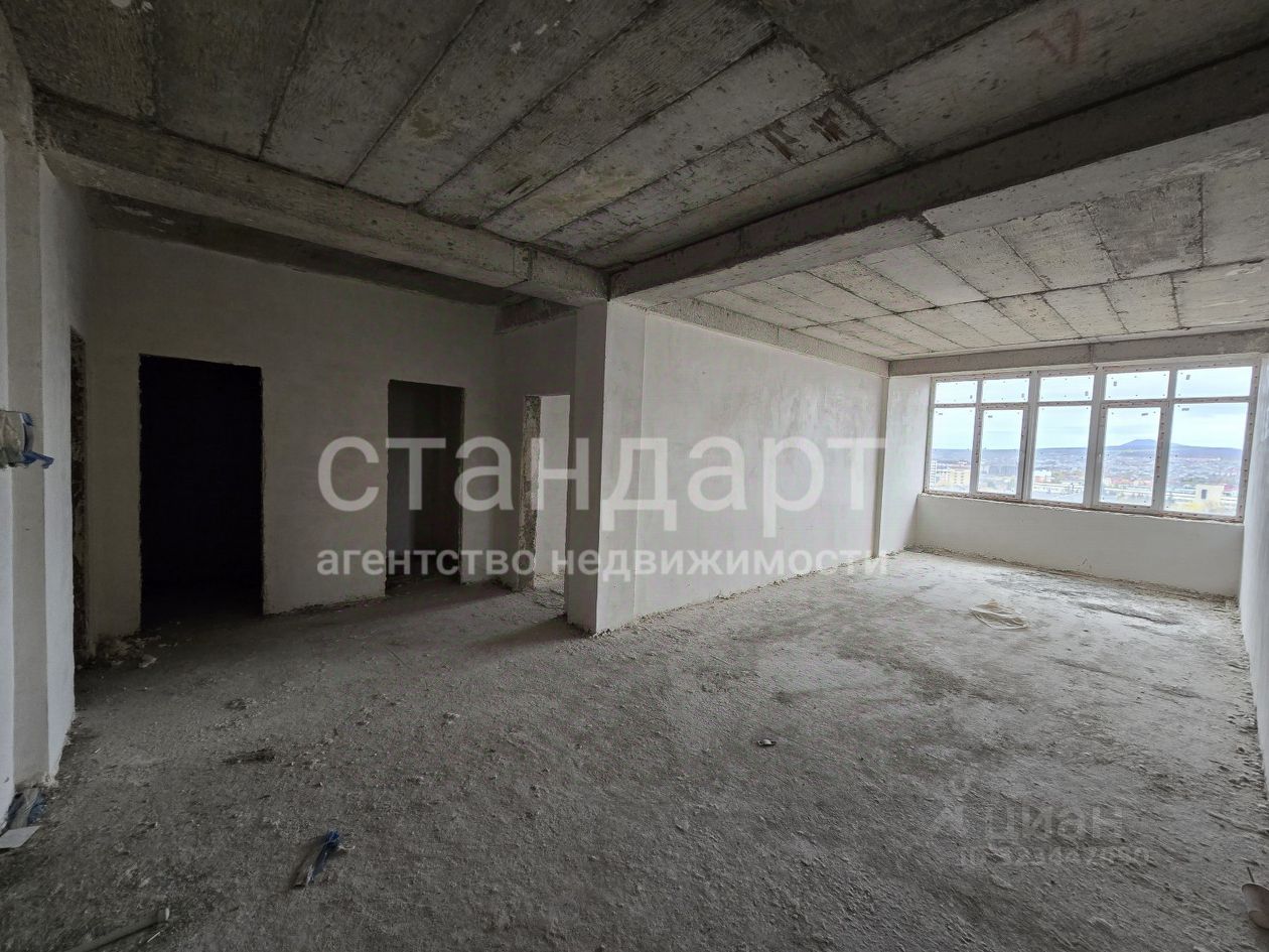 Квартира окнами на южную сторону с прекрасным панорамным видом на курортную зону, город и Эльбрус. По планировке на две стороны, просторная кухня, зал с панорамным остеклением, 3 раздельных с/у, кладовая. Состояние после строителей, на стенах гипсовая штукатурка, ввод электрики в квартиру, стяжки и системы отопления нет, одна из комнат с панорамным остеклением.