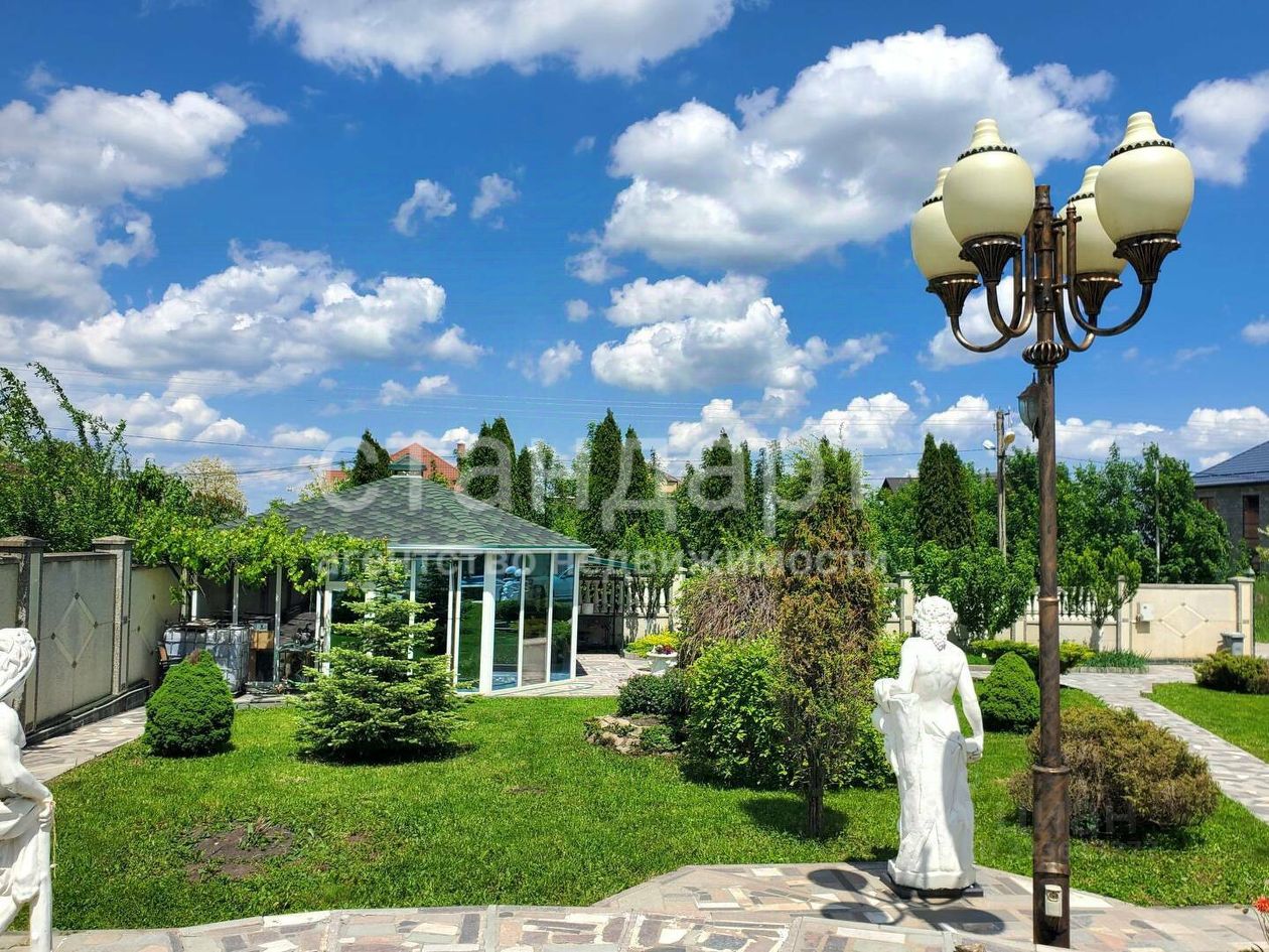 Во дворе дома сделан крытый заезд на несколько автомобилей с автоматическими воротами, бассейн, интересный ландшафтный дизайн с туями, декоративными кустарниками и зелеными насаждениями, а также молодыми фруктовыми деревьями. Рядом с мангальной зоной находится летняя кухня со всеми коммуникациями площадью 56 м2. Территория двора вымощена натуральным гранитом, по периметру участка забор отделан мраморной крошкой.