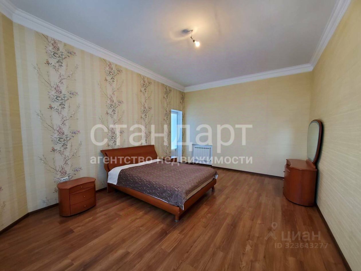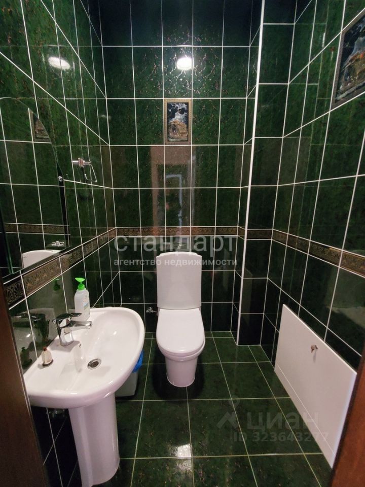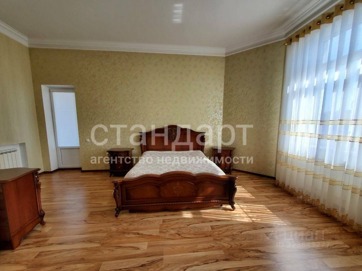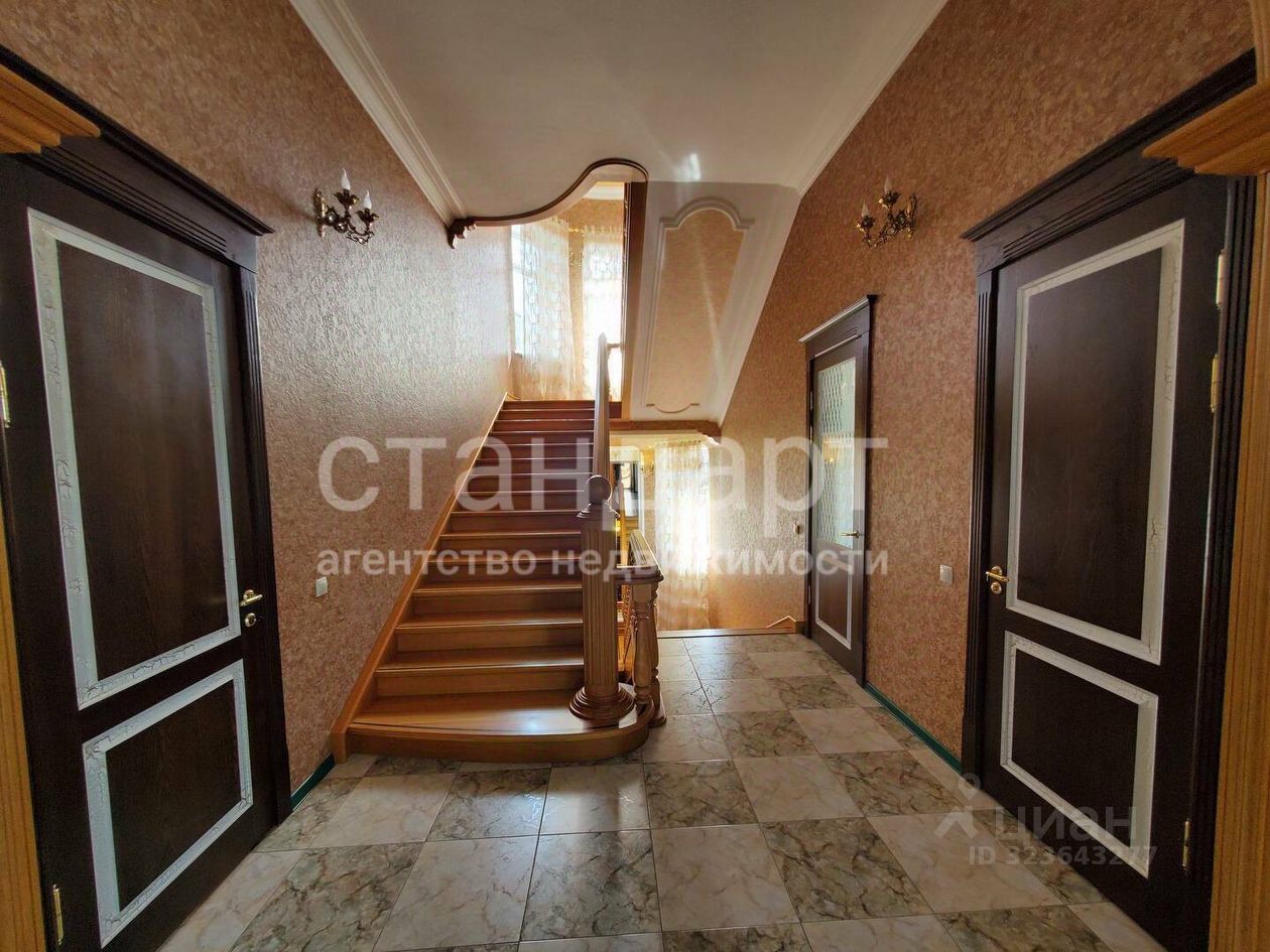 В доме сделан дизайнерский ремонт, на первом этаже располагаются просторная кухня - гостиная, зал, спальная комната, санузел, прихожая, на втором этаже: холл, четыре спальные комнаты (одна из которых со своим санузлом), кабинет, второй санузел. Из каждой спальной комнаты на втором этаже выход на свой балкон. На высоком цокольном этаже: кухня, зал, спальная комната, раздельный санузел, кладовая, котельная, прихожая.
