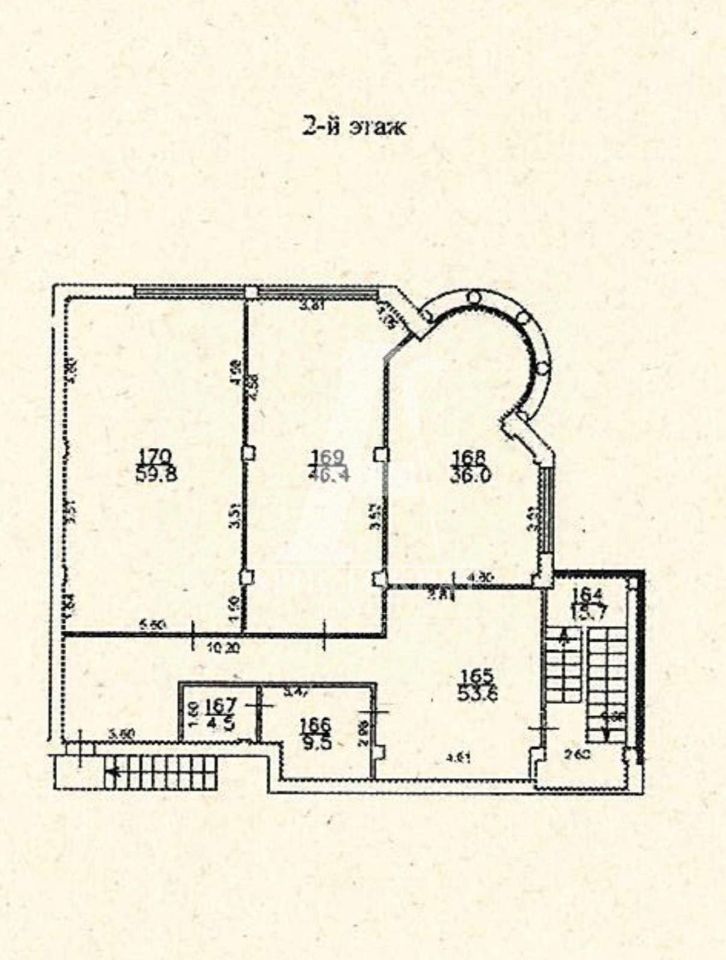 Помещение включает в себя : 2 отдельных входа , общий зал 156 кВ.м.( 1 этаж ) Санузел и подсобные помещения 17,7 кВ.м.
