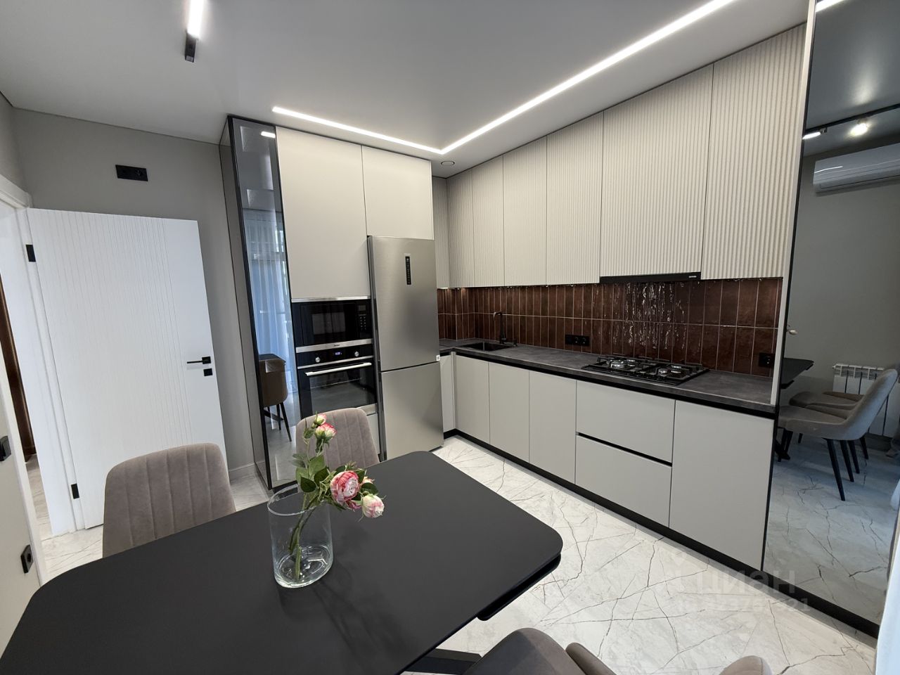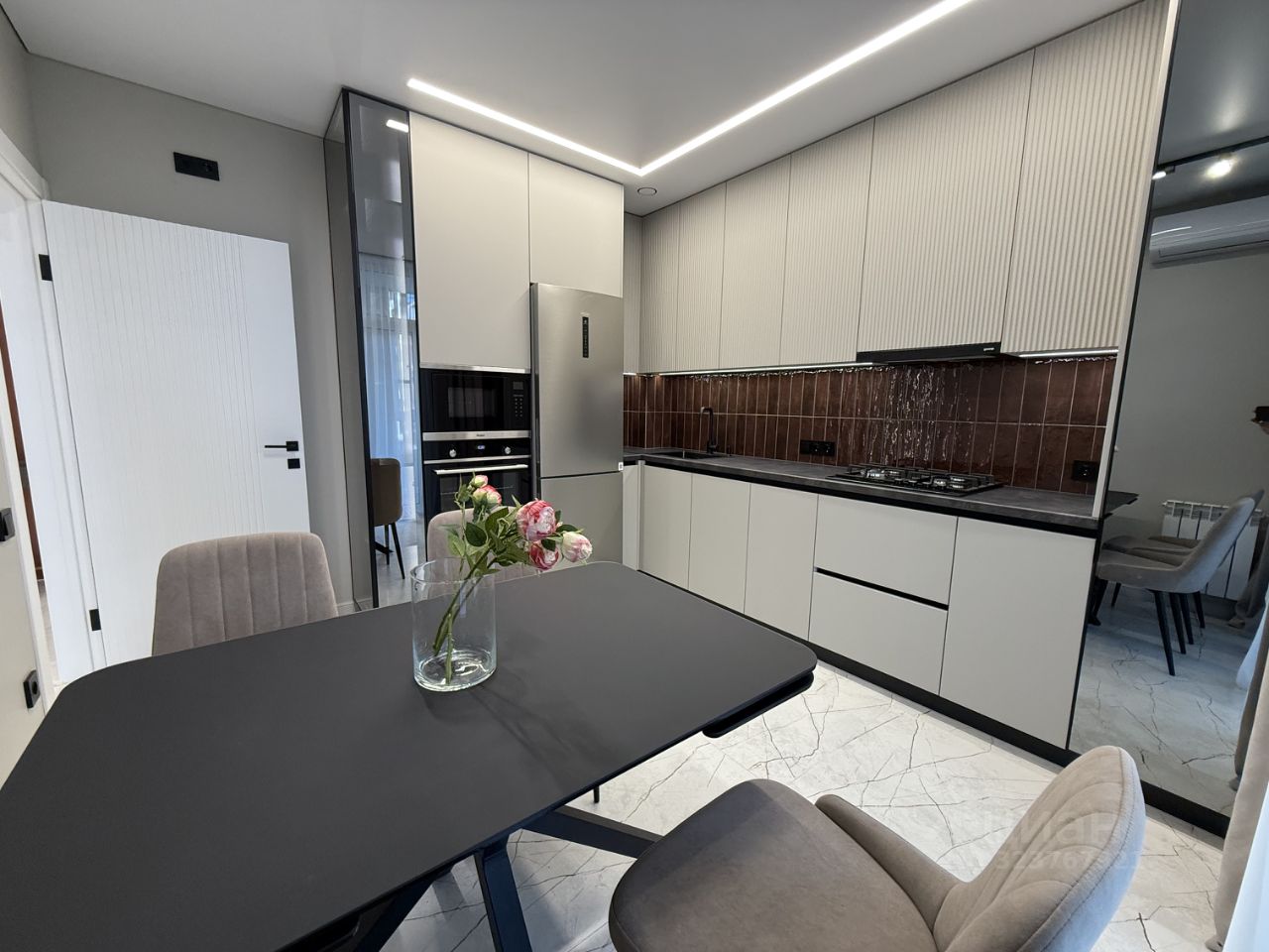 Новый качественный ремонт (новая штукатурка по маякам, новая электропроводка, все потолки с теневым профилем), вся мебель, техника, никто не проживал.