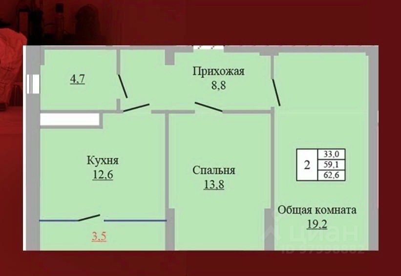 Общая площадь62,6 м2