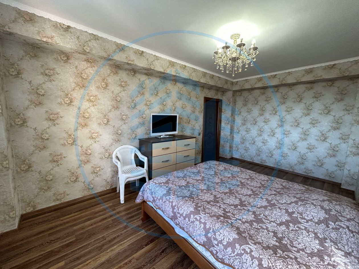 Просторная кухня, две изолированные спальни, напольное покрытие ламинат, в зоне санузла плитка, на стенах обои, натяжные потолки, Остается вся мебель и техника,