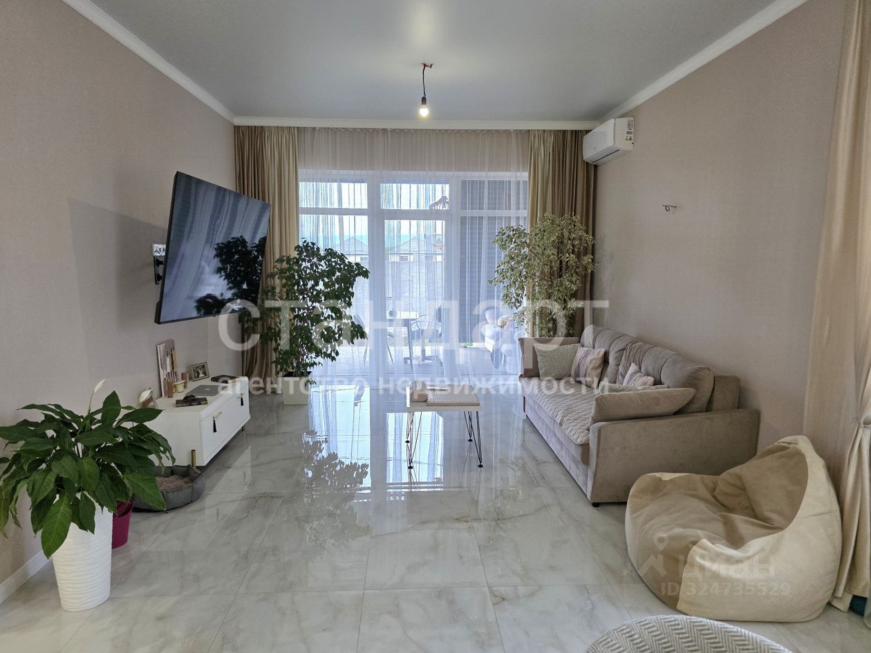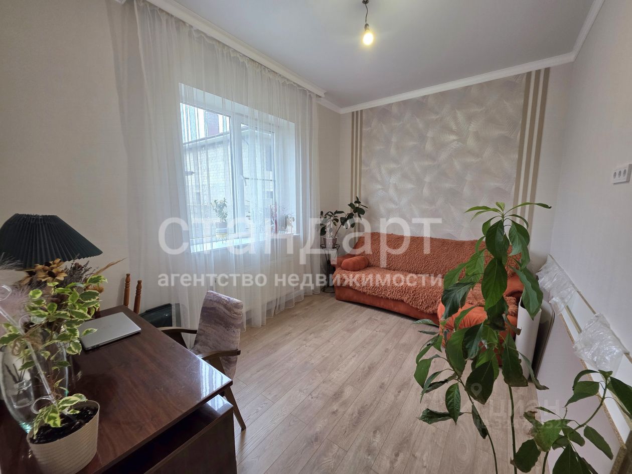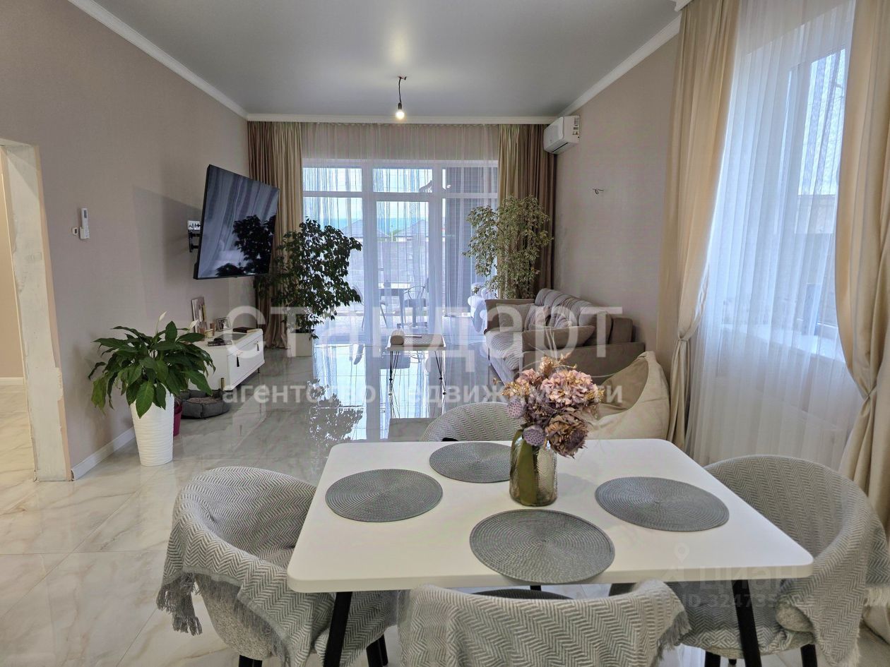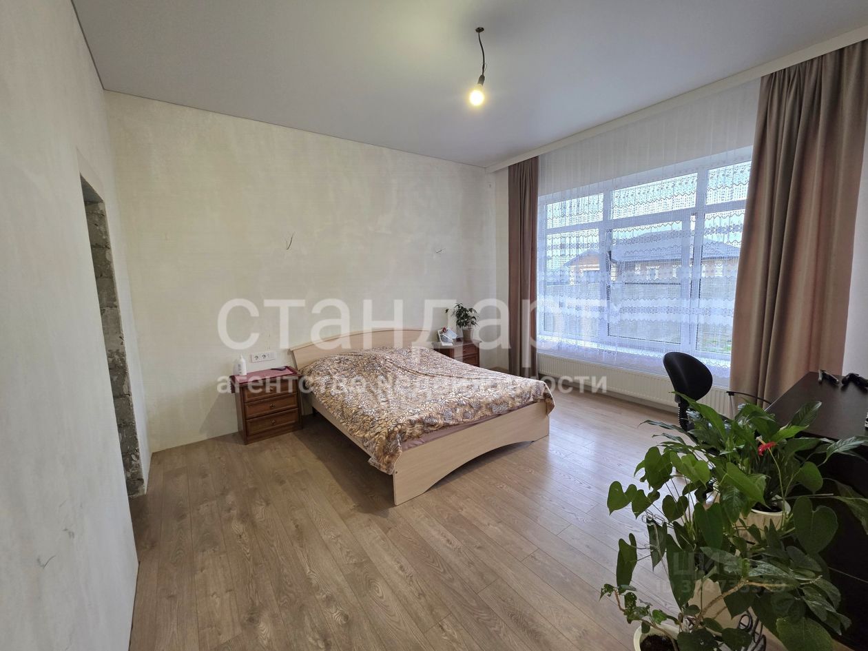В доме сделан качественный ремонт, удобная планировка: просторная кухня - гостиная с выходом на террасу с фасадной стороны дома, три спальные комнаты, раздельный санузел, прихожая.